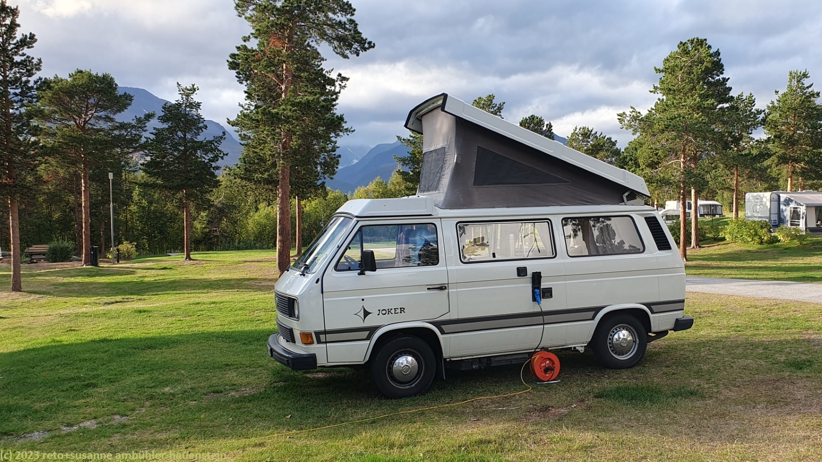 | unser jogi auf dem fast leeren olderelv camping bei skibotn | susanne findet es sei kühl in unserem jogi |