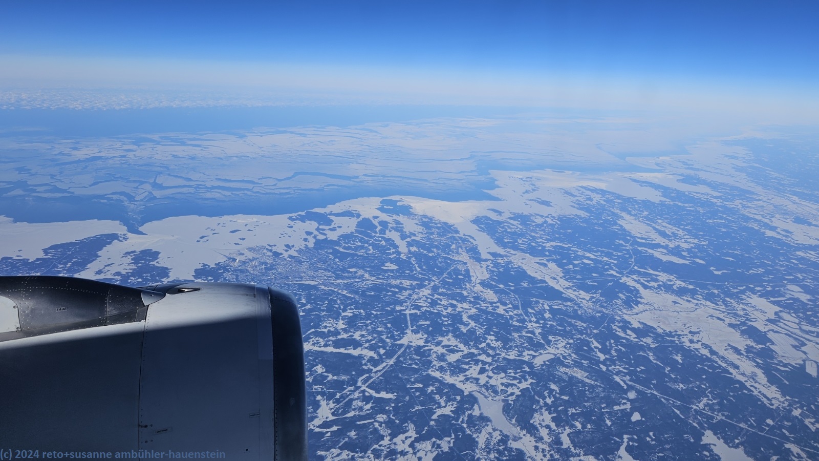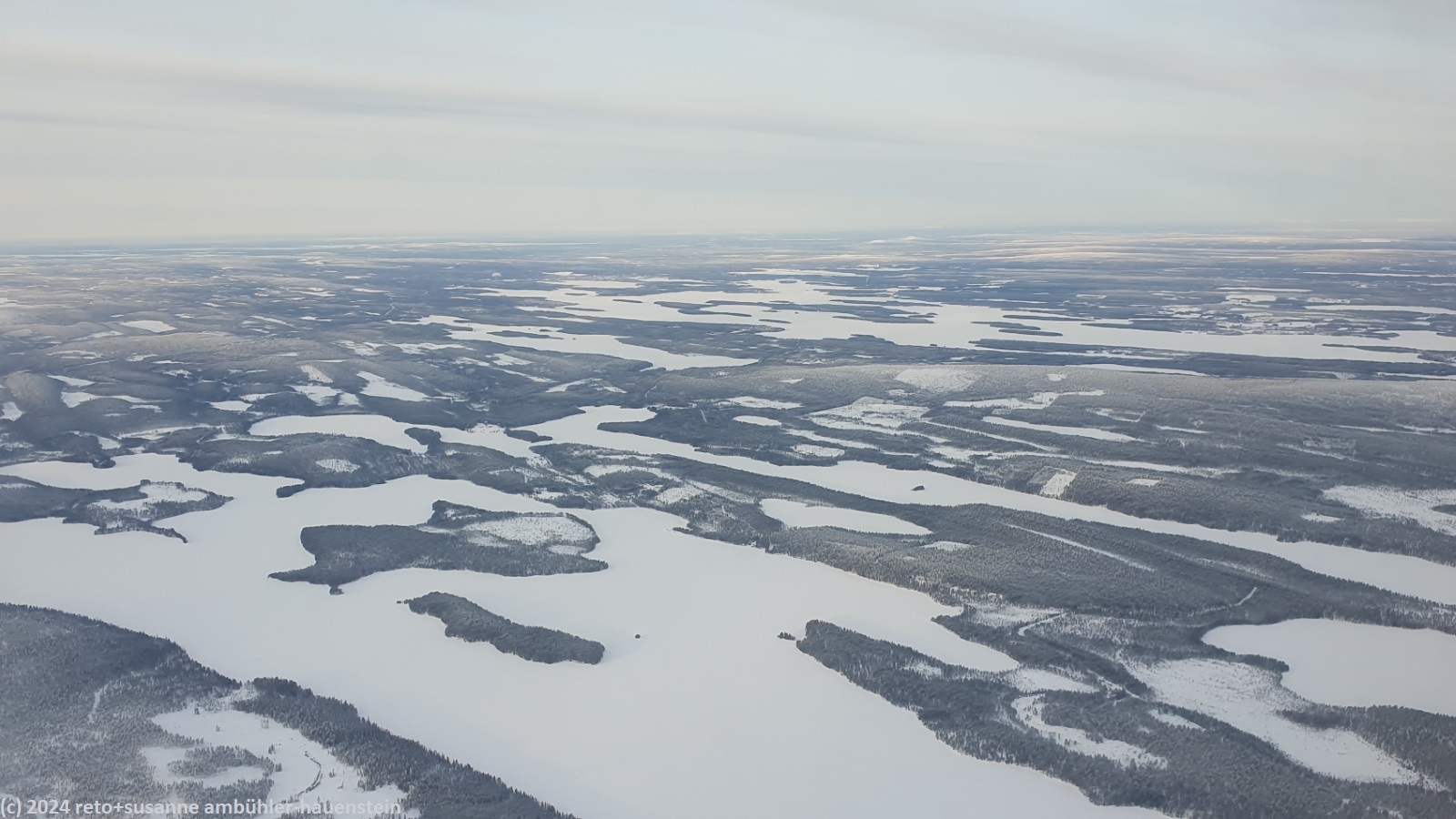 gegen 9 uhr sitzen wir im flugzeug. der dritte sitz in unserer reihe bleibt frei, das ist sehr angenehm. mit wenigen minuten verspätung heben wir bei regnerischem wetter ab. gemäss anzeige beim gate ist es in kuusamo zur zeit -28°C, das kann frisch werden ! auf dem flug richtung norden ist das wetter eher trüb, selbst bei frankfurt sind wir nur knapp über den wolken. zu unserer überraschung gibt es ein kleines, aber köstliches frühstück. gegen 10:45 uhr erreichen wir die ostseeküste. über åland ist die sicht nach unten frei, wir sehen, dass die insel schneebedeckt ist. gegen 11:45 uhr erreichen wir das finnische festland, das heisst, jetzt ist es 12:45 uhr, denn wir haben die zeitzone gewechselt. ab oulu haben wir wieder sicht nach unten. wir sehen eine schneebedeckte winterlandschaft, genau so, wie es sein soll. um 13:30 uhr beginnt der sinkflug richtung kuusamo.