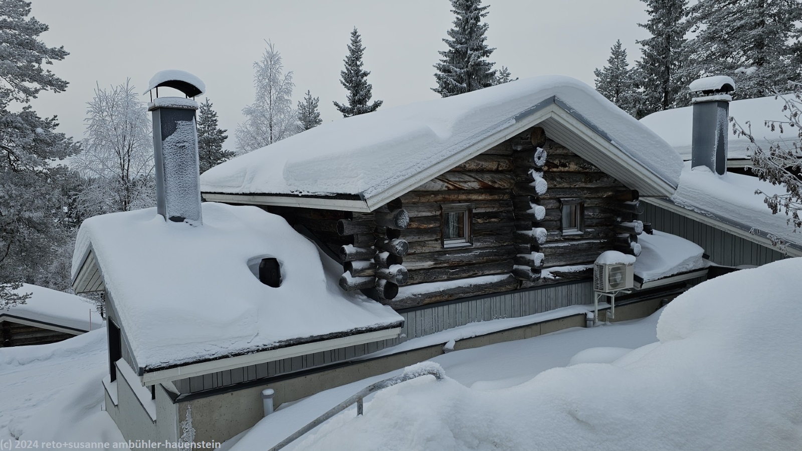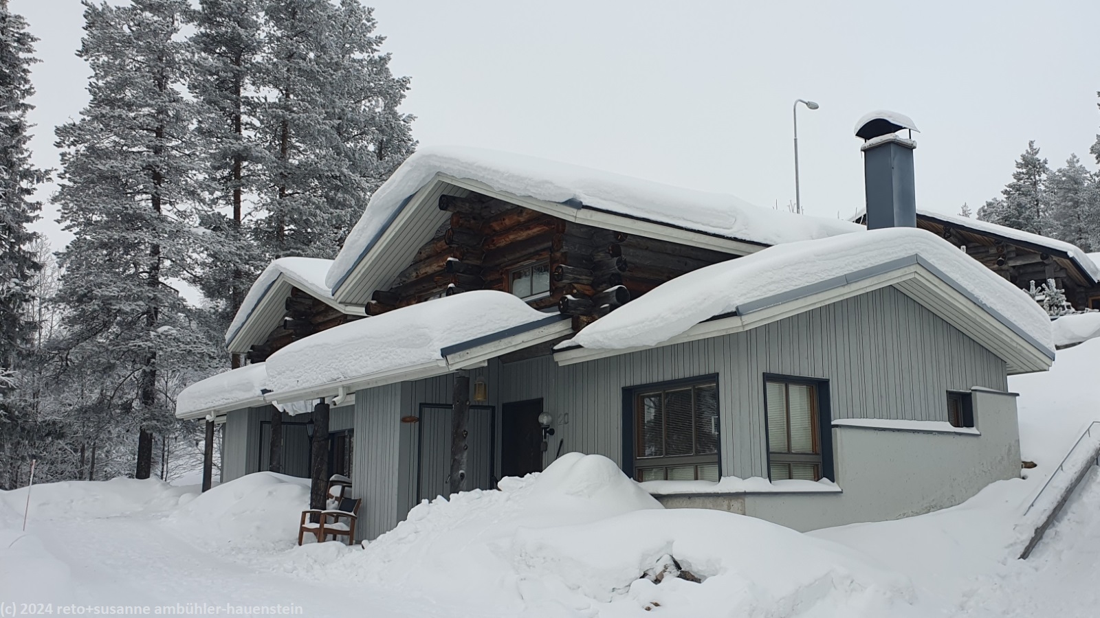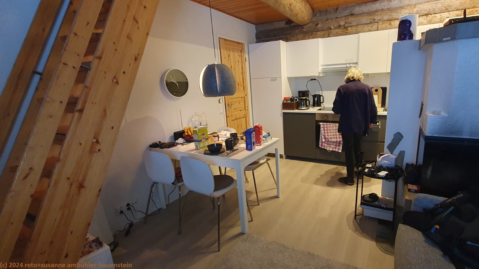 gegen 17 uhr sind wir in ruka. das haus ist rasch gefunden, wir waren ja im vergangenen sommer schon einmal da, siehe tagebuch vom 20-sep-2023. der code zum schlüsselkasten funktioniert, schon stehen wir in der hübschen stube. wir entladen das gepäck und die lebensmittel und richten uns häuslich ein.