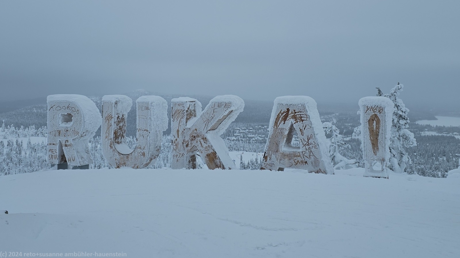 schriftzug RUKA! im skigebiet | winterlandschaft auf dem rukatunturi |