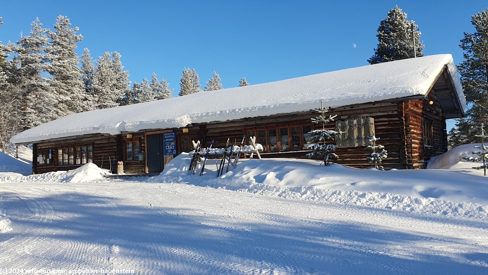 nach dem frühstück brechen wir zu einer längeren langlaufrunde auf. die strecke bis zum savottakahvila kennen wir bereits von unserer gestrigen runde. als wir diskutieren, wo es wohl nun lang geht, spricht uns eine freundliche landsfrau an. wir unterhalten uns kurz, dann setzen wir uns ins rustikale cafe und trinken einen tee.