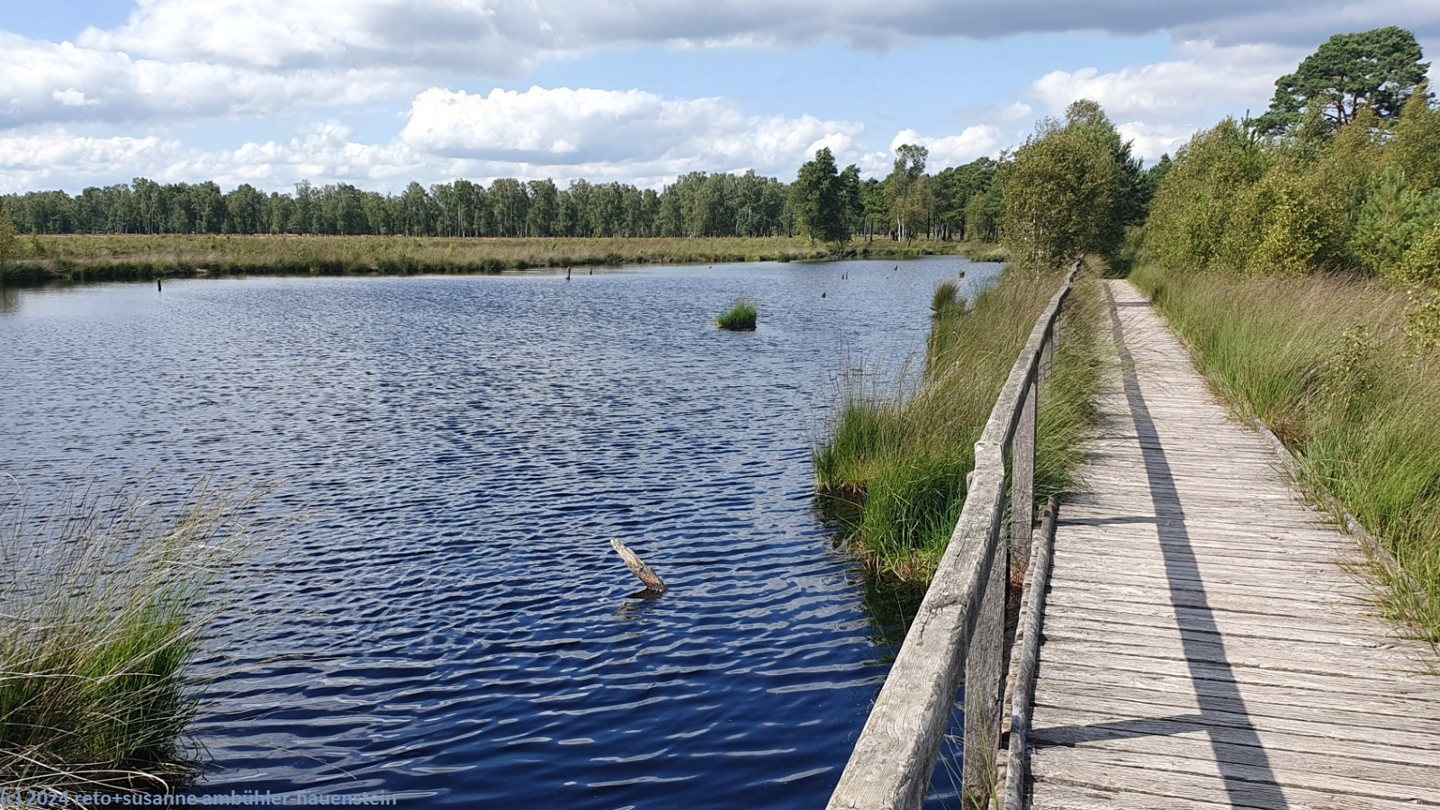 anschliessend nehmen wir den rundweg durch das pietzmoor unter die füsse. ein holzsteg führt durch eine fantastische moorlandschaft. es hat zahlreiche teiche und tümpel. manche haben eine markant rechteckige form. hier wurde einst torf abgebaut.