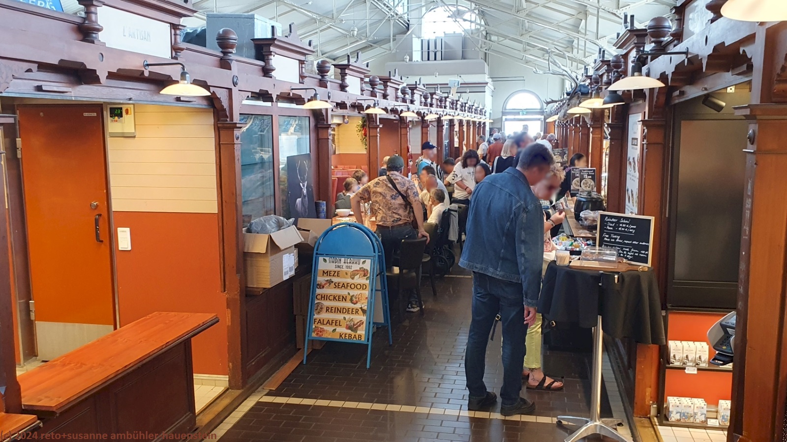| alte markthalle beim hafen in helsinki | reges treiben in der alten markthalle |