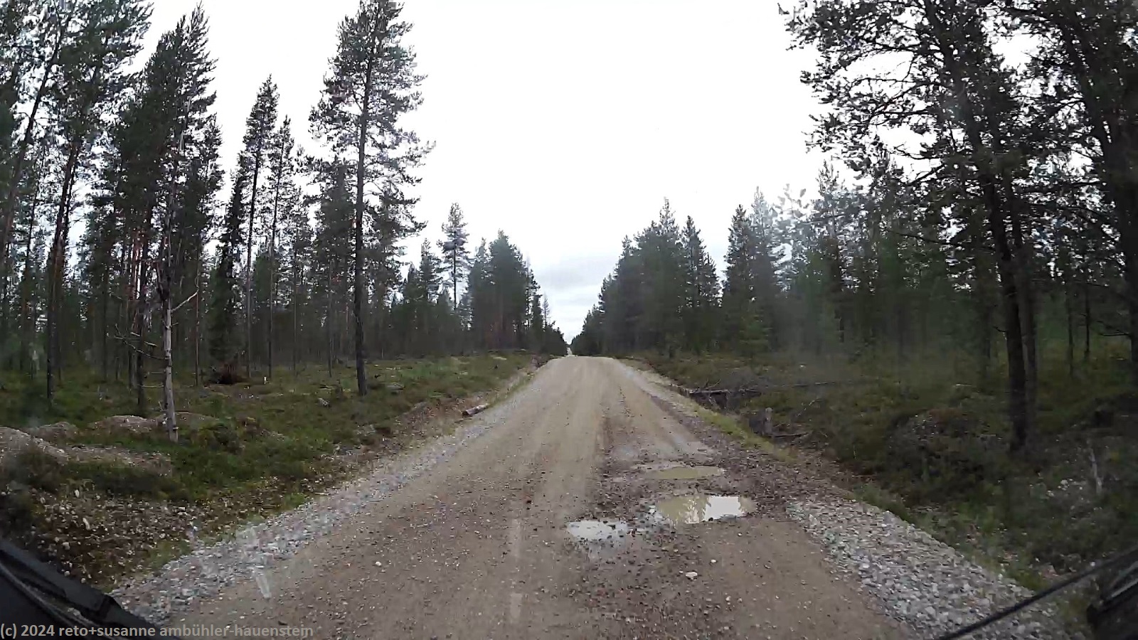 es ist schon 08:45 uhr, als wir endlich aus dem bett kommen. heute frühstücken wir im jogi, obwohl das wetter gleich ist wie gestern. kurz vor 11 uhr machen wir uns auf den weg richtung julma-ölkky. wieder geht es über eine unbefestigte strasse mit zahlreichen schlaglöcher. der hossa nationalpark schützt hier nur gerade den langgezogenen julma-ölkky und dessen ufer. der schmale bereich ist keine 600 meter breit. auf der fahrt zum ausgangspunkt unserer heutigen wanderung fahren wir an einer riesigen kiesgrube vorbei, die gerade noch ausserhalb des parkes liegt.