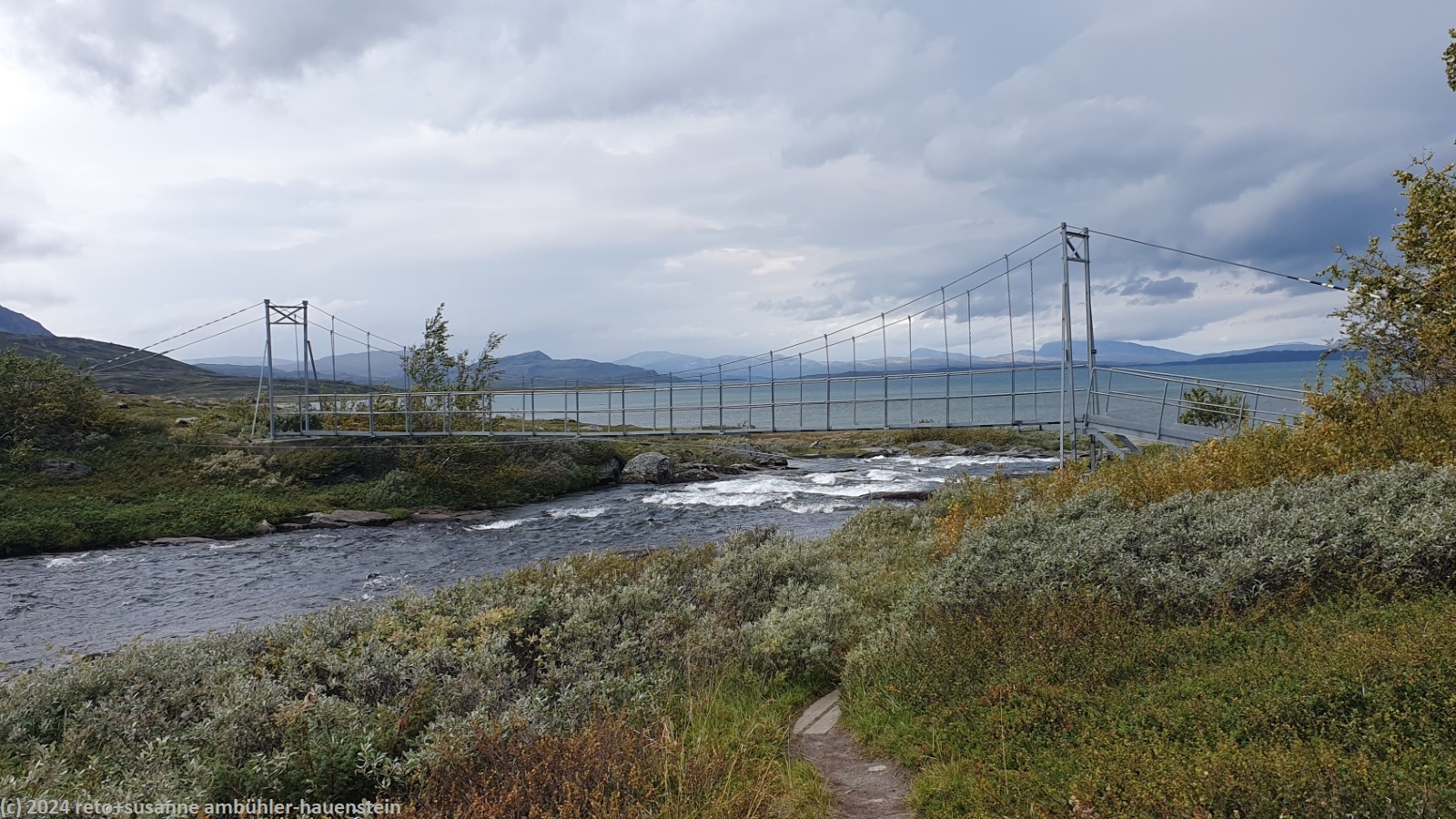 | picknickplatz mit blick auf den virihaure | hängebrücke über den gieddejåhkå |