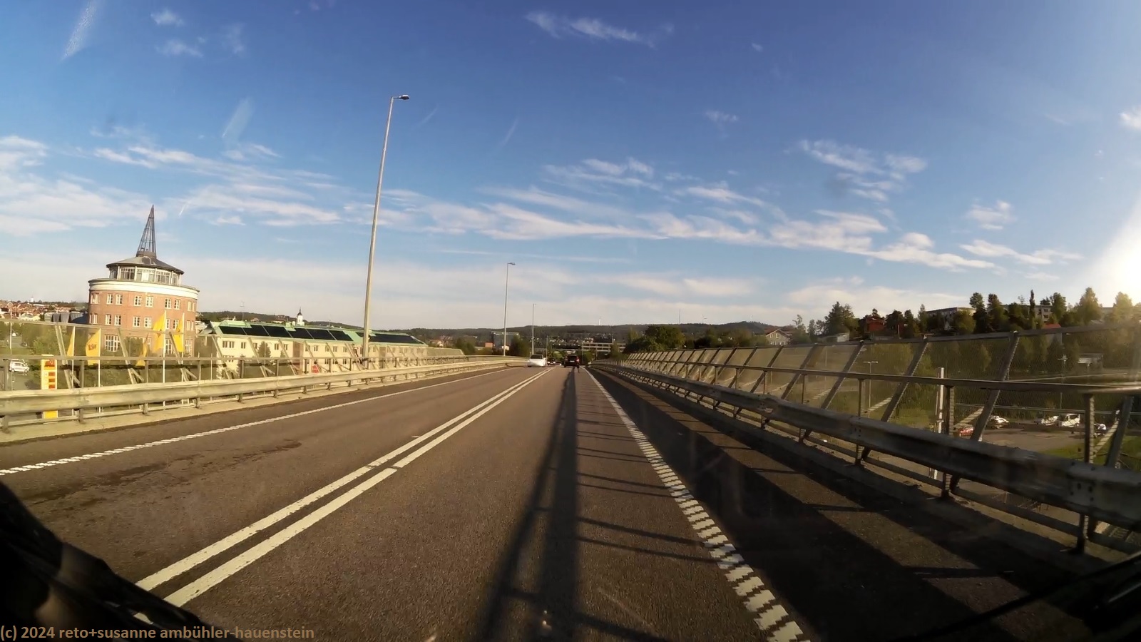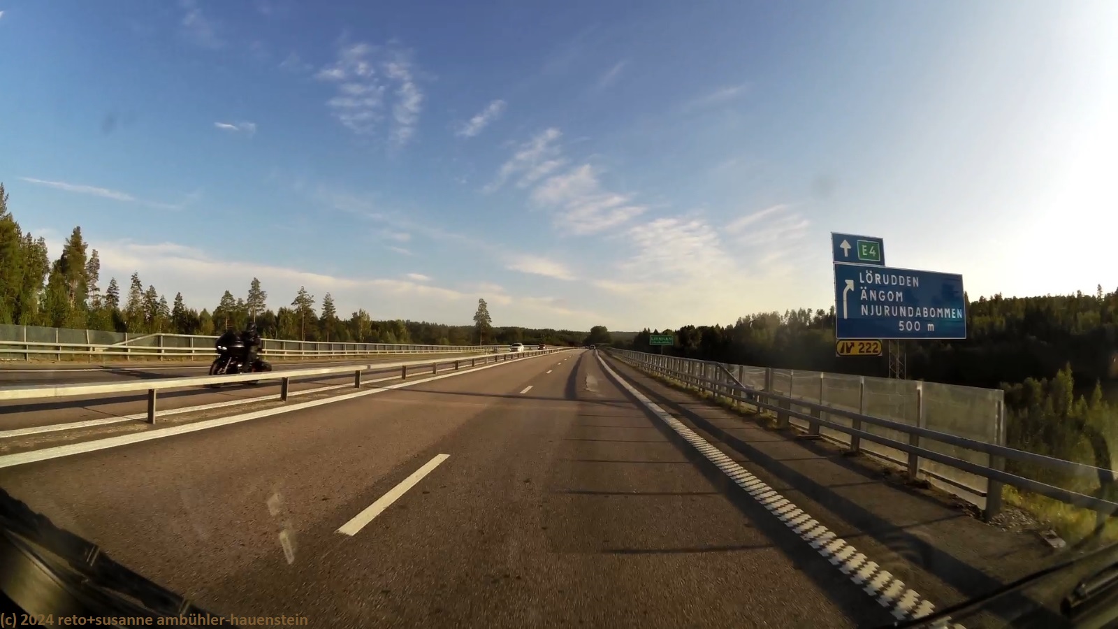 der aufwand hat sich gelohnt, wir essen je eine köstliche salatschale, danach gibt es einen feinen kaffee und für mich ein stück karottentorte. kurz vor 15 uhr sind wir wieder beim jogi. bei der nächsten tankstelle füllen wir den tank unseres wagens, dann geht es auf der E4 der küste entlang südwärts. an der situation auf der strasse ändert sich nichts und so geht es ohne verzögerungen vorwärts. als wir uns sundsvall nähern, lockert sich die wolkendecke auf und die sonne scheint. gegen 18:15 uhr erreichen wir unser tagesziel bergafjärdens camping.