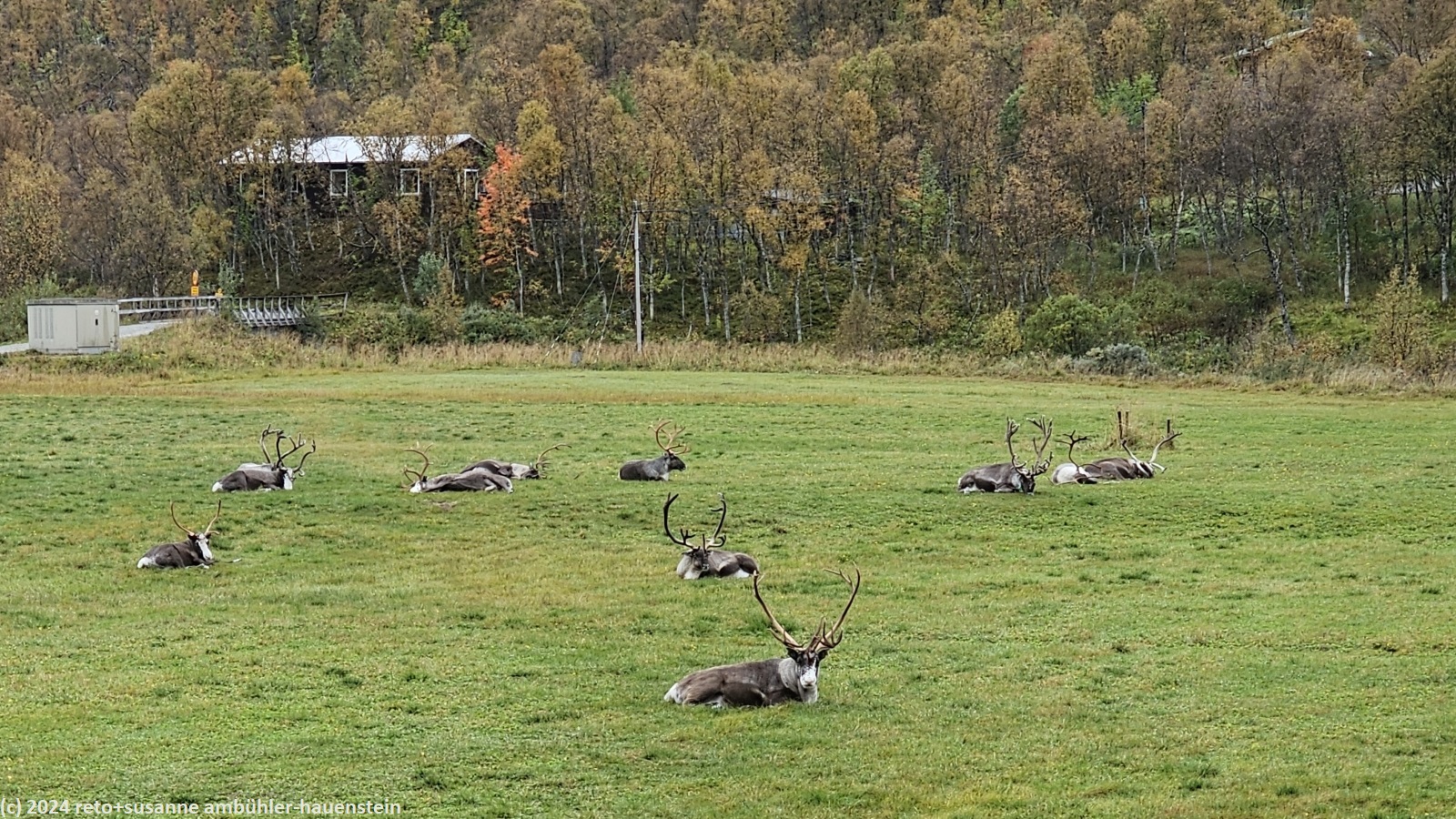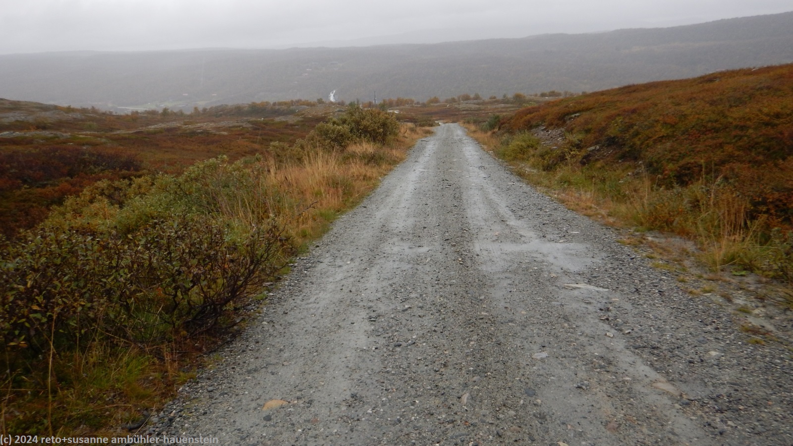wir essen nur einen teil davon, einiges nehmen wir mit auf unsere wanderung. nach dem üppigen frühstück reinigen wir unsere hütte, dann melden wir uns bei unserer gastgeberin ab. wir wandern dem malmagen entlang am uns wohlbekannten campingplatz "fjällnäs camping & lodges" vorbei - dort haben wir vergangenes jahr vor und nach unserer wanderung über den nördlichen teil des südlichen kungsleden übernachtet, siehe tagebücher vom 27-jul-2023 und vom 05-aug-2023. leider endet der weg nach knapp 800 meter und wir müssen 1.5 km der landstrasse entlang gehen. glücklicherweise fahren hier sehr wenige autos. kurz nach dem mächtigen wasserfall zu unserer linken biegen wir nach rechts auf eine unbefestigte mautstrasse ab. diese steigt enorm steil an. während wir an höhe gewinnen, setzt der angekündigte regen ein. ich schütze mich erst mit dem schirm, aber als wir über die baumgrenze kommen, nimmt der wind stark zu und es bleibt mir nichts anderes übrig, als auch das regenzeug anzuziehen. je höher wir auf das kahle fjäll kommen, umso widerlicher wird das wetter. der wind wird immer heftiger und bläst uns den regen ins gesicht. nach etwa 5 km meint susanne: "warum tun wir uns dies noch an ?". die wettervorhersage war wirklich übel, wir hätten doch noch ein oder zwei tage warten können, meint sie. da wir die hütten entlang der route alle schon gebucht und bezahlt haben, ist eine verschiebung zwar nicht unmöglich, aber halt doch aufwändig. und so trotzen wir dem wetter und wandern bei garstigsten bedingungen über das bestimmt wunderschöne fjäll, wenn man es sehen könnte. in einer senke machen wir einen kurzen halt und essen einen stengel. bis zur ersten hütte sind es etwas mehr als 28 km. unser plan ist es, etwa die hälfte zu gehen und dort im zelt zu übernachten. morgen wollen wir dann den rest bewältigen. aber da, wo ich die übernachtung geplant hatte, ist nicht daran zu denken, das zelt aufzubauen. es giesst und stürmt und so gehen wir einfach weiter. gemäss reiseführer hat es nach etwa 18 km eine schutzhütte, die allerdings in einem üblen zustand sein soll. aber egal wie schmutzig die schützhütte auch sein soll, sie bietet uns hoffentlich etwas schutz vor dem wetter. so marschieren wir tapfer weiter. der weg wird immer holpriger, hohe und rutschige steine versperren den weg bzw. wollen überstiegen werden. gegen 16:45 uhr erreichen wir die schutzhütte und erleben eine äusserst erfreuliche überraschung: die hütte ist ganz neu und in tadellosem zustand.