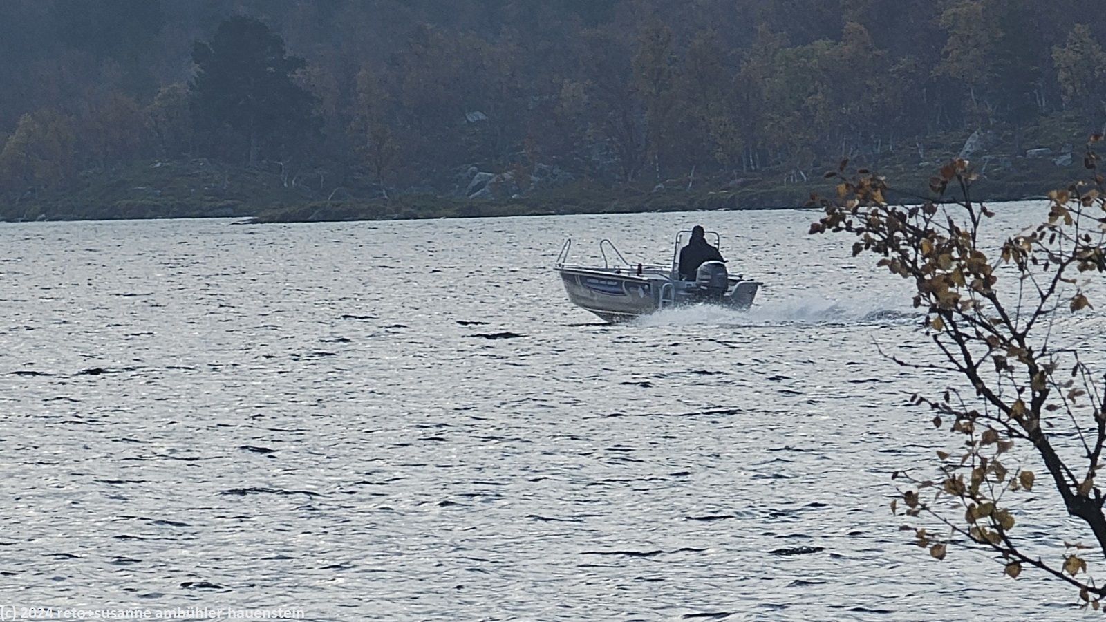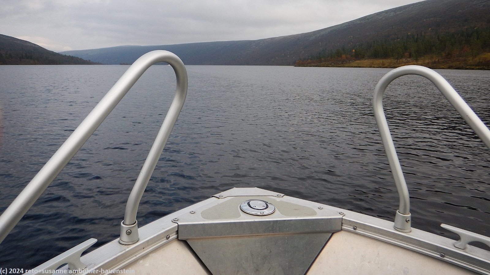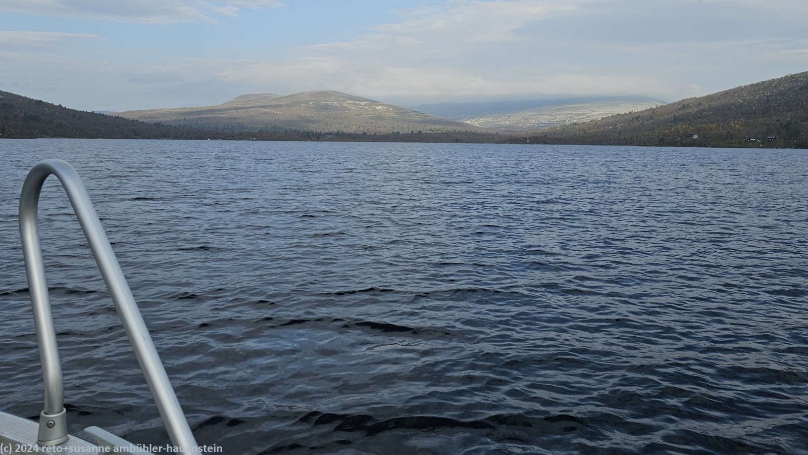 dort angekommen, erkundigen wir uns nach einem boottaxi zum nördlichen ende des grövelsjön. dieses liegt in norwegen in der nähe der kleinsiedlung ryvang. das klappt schneller als gedacht. noch während wir mit der dame am empfang sprechen, taucht schon der bootsführer auf und wir können gleich los. keine zehn minuten später sitzen wir im kleinen motorboot und brausen über den see. nach knapp 15 minuten sind wir bereits am ziel.