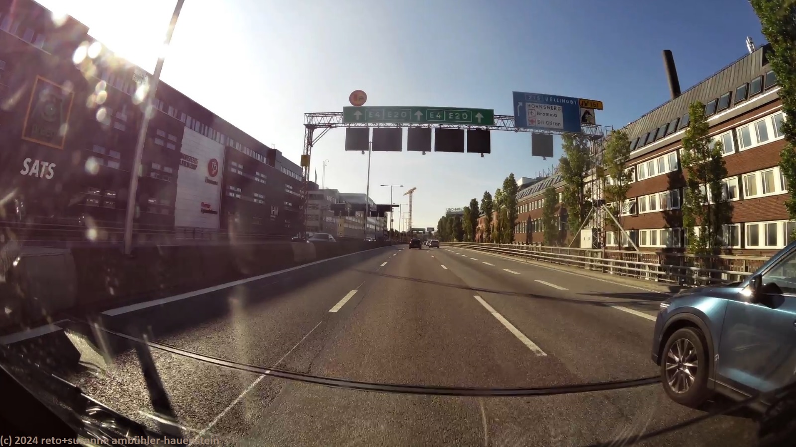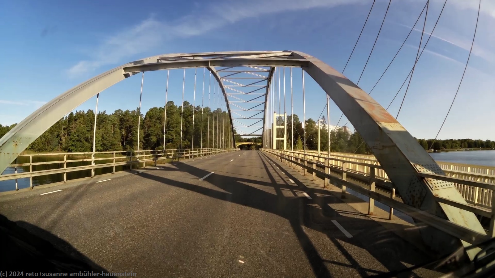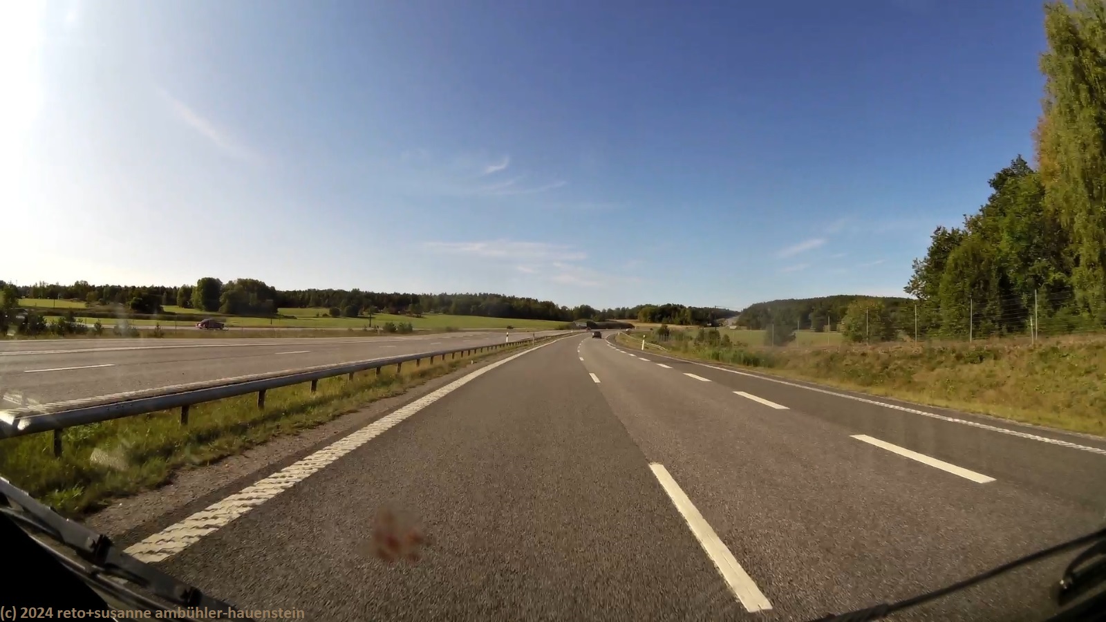 unser handy weckt uns um 07:30 uhr. wieder erwartet uns ein strahlend blauer himmel, so dass wir im freien frühstücken können. wie geplant machen wir uns um 09:30 uhr auf den weg richtung nynäshamn. erst geht es bei regem verkehr über die strasse 274 westwärts. vorallem in der gegenrichtung sind viele autos unterwegs. viele stockholmer machen wohl an diesem sonnigen tag einen sonntagsausflug heraus aus der stadt. bei arninge tanken wir unseren wagen auf, dann geht es auf der autobahn E18 richtung schwedens hauptstadt. erstaunlicherweise schlägt unser navi vor, mitten durchs stadtzentrum zu fahren. uns scheint das keine so gute idee, wir folgem deshalb dem autobahnring E20 und umfahren die stadt. auch hier herrscht dichter verkehr, aber wir kommen sehr gut voran, so dass wir unseren entscheid nicht bereuen. südlich der stadt geht es auf der autobahn 73 südwärts richtung nynäshamn. der verkehr nimmt rasch ab, nachdem wir die 70er-zone endlich hinter uns haben, geht es zügig vorwärts. kurz vor 11 uhr sind wir im hafen von nynäshamn. der check-in geht problemlos. noch bleiben knapp 45 minuten bis zur fahrplanmässigen abfahrt. susanne liest im auto, ich schreibe tagebuch. plötzlich setzen sich die fahrzeuge vor uns in bewegung. rasch nehme ich hinter dem steuer platz und fahre an bord.