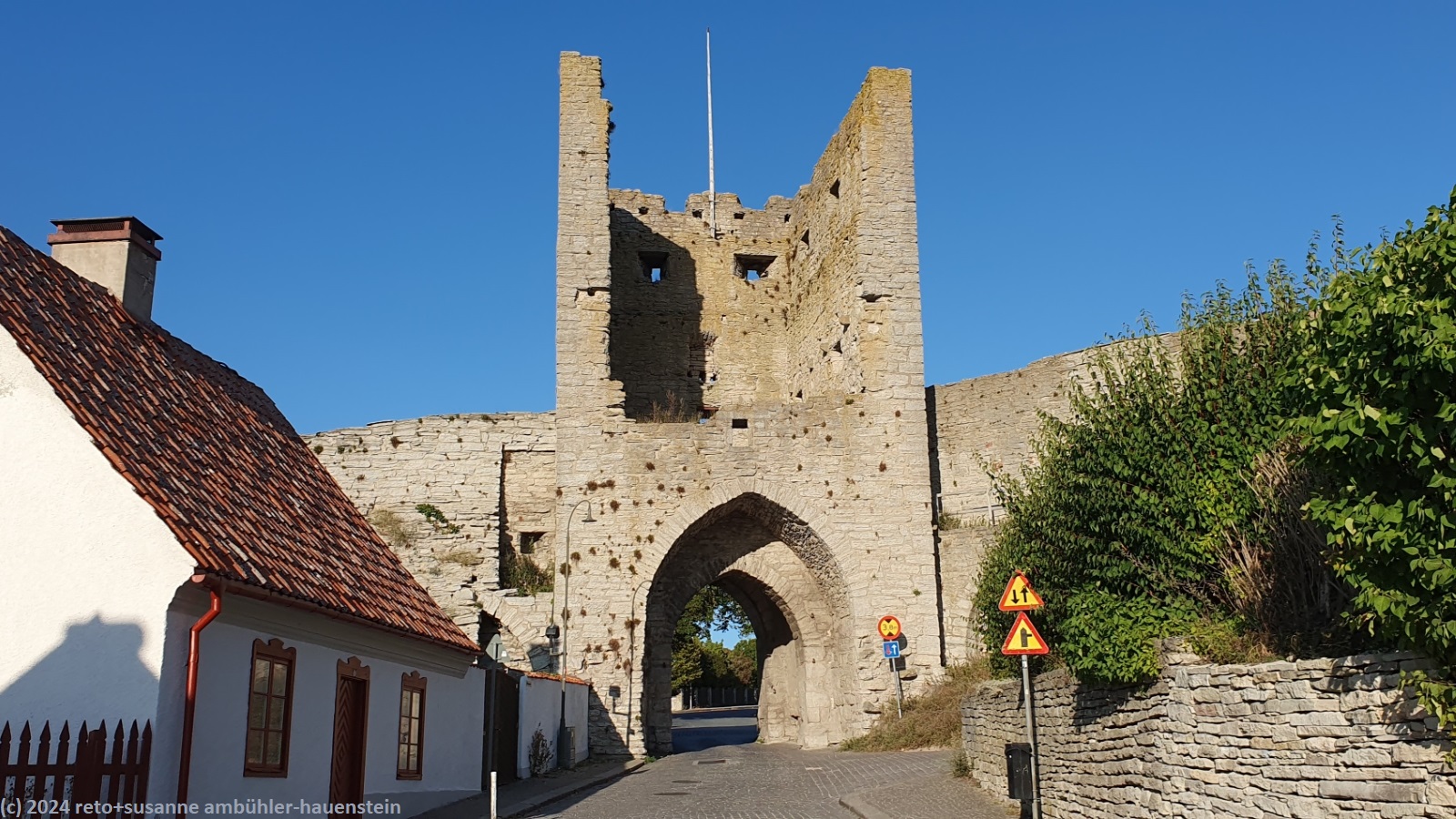 wir stehen um 07:30 uhr auf und frühstücken bei strahlend blauem himmel im freien. zwei stunden später machen wir uns auf dem weg. auf der strasse 274 kommen uns viele autos entgegen, vermutlich vorwiegend sonntagsausflügler. wir umfahren stockholm auf der E20 und biegen dann südlich der stadt auf die autobahn 73 ab. hier nimmt der verkehr rasch ab und die lästige geschwindigkeitsbegrenzung auf 70 km/h wird endlich aufgehoben. kurz vor 11 uhr sind wir im hafen von nynäshamn. der check-in klappt problemlos und 30 minuten später sind wir an bord. zu beginn der überfahrt sitzen wir auf dem oberdeck. später begeben wir uns ins restaurant und essen eine kleinigkeit. die fähre ist gut besetzt, es ist nicht einfach, einen freien tisch zu finden. um 15 uhr erreichen wir visby und stehen wenig später beim empfang des camping visby strandby. zu unserer überraschung ist die reception geöffnet und wir bestätigen unsere registrierung für drei nächte. danach gehen wir einkaufen. anschliessend spazieren wir durch die altstadt, wo wir einen tee trinken. zurück auf dem campingplatz geniessen wir das nachtessen im jogi, denn draussen ist es inzwischen kühl geworden. nach dem abwaschen planen wir die kommenden tage auf gotland.