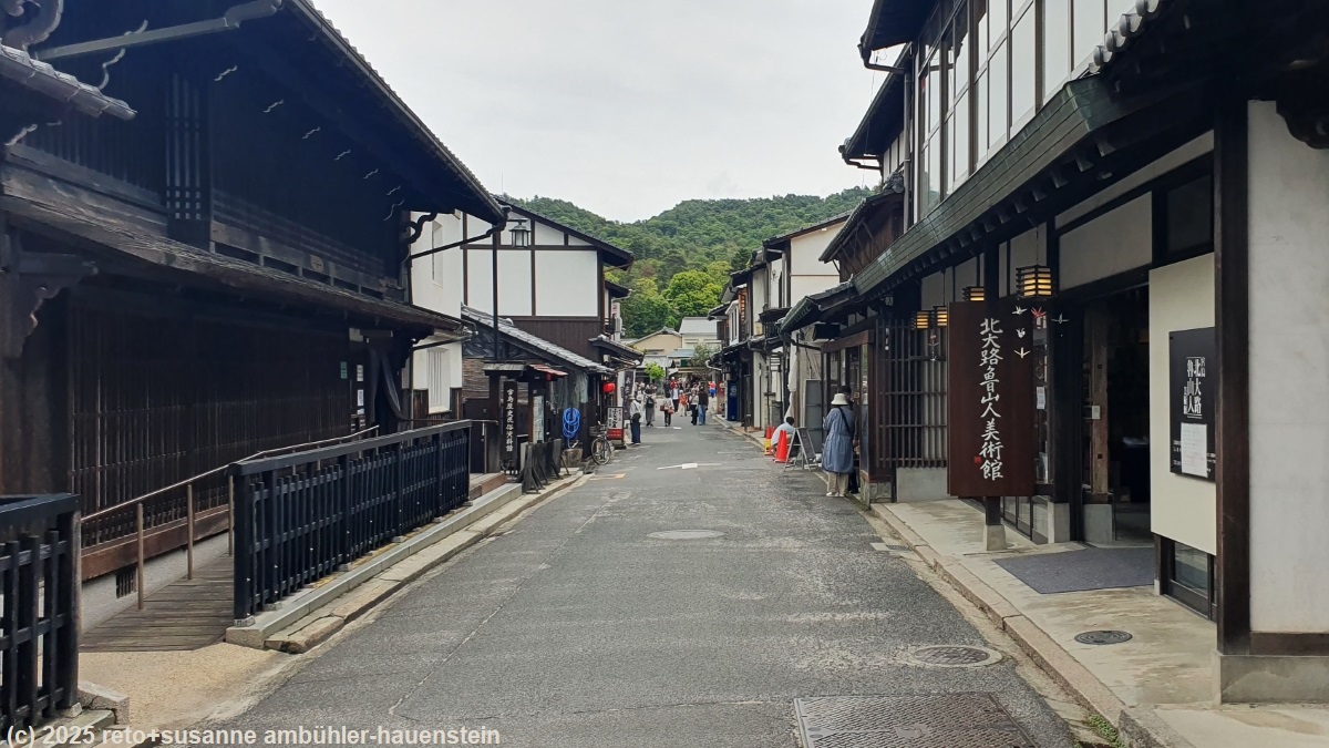 wir machen einige bilder und nehmen dann den abstieg in angriff. wir wählen für den rückweg den "misen climbing path - momijidani course". bis zum abzweiger zur bergstation der seilbahn hat es viele leute. nach dem abzweiger sind es zwar weniger, aber immer noch überraschend viele. wieder geht es durch den angenehm kühlen wald. der abstieg ist deutlich weniger schweisstreibend. aber als wir beim ort aus dem wald kommen, erschlägt uns die wärme beinahe. in einem kleinen cafe trinken wir einen kaffee, ich geniesse dazu ein köstliches vanille-eis. vor dem fenster steht einer der typisch japanischen strommasten - ich finde den kabelsalat hochgradig faszinierend. was wohl unser SEV dazu sagen würde ?