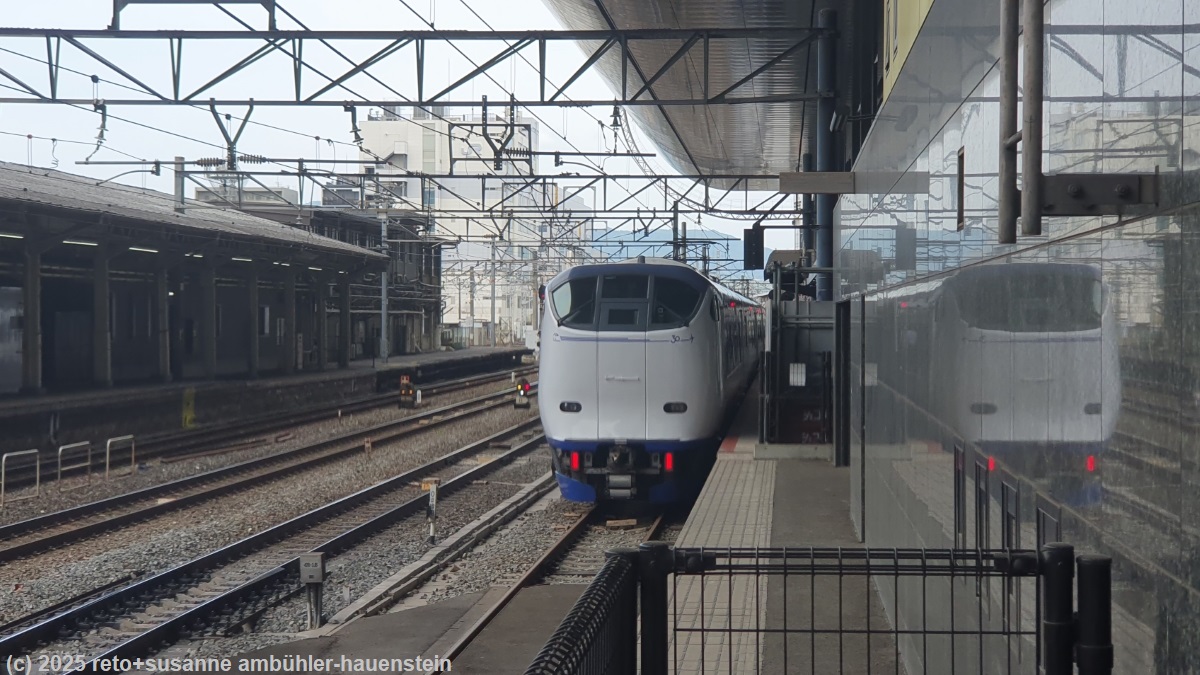 heute steht uns der sinn nach nudelsuppe. bald haben wir ein passendes restaurant gefunden. mit hilfe einer netten und geduldigen dame schaffen wir es, beim eingang an einem bildschirm unsere menus auszuwählen, zu bestellen und auch gleich zu bezahlen. anschliessend werden uns zwei sitzplätze zugewiesen. das essen schmeckt sehr gut. vor dem restaurant bildet sich inzwischen eine längere warteschlange, da haben wir gerade noch glück gehabt. wir möchten das nachtessen mit einem kaffee bzw. tee abrunden. susanne findet auf einem plan des bahnhofs ein starbucks cafe auf der anderen seite der gleise. nach einem längeren marsch finden wir das lokal und geniessen unsere getränke. dabei haben wir einen interessanten ausblick auf die vorbeigehenden leute. gemäss fahrplan verkehrt am sonntag um diese uhrzeit nur noch alle 30 minuten ein bus richtung hotel. in sieben minuten fährt der nächste. mit etwas glück schaffen wir es gerade noch rechtzeitig zur bushaltestelle. gegen 21:45 uhr sind wir wieder im hotel. die waschmaschinen sind immer noch alle belegt. susanne setzt sich in die waschküche in der hoffnung, eine maschine werde innert nützlicher frist frei. dem ist leider nicht so. aber in der waschküche hängt ein zettel mit dem hinweis, dass es ganz in der nähe eine öffentliche wäscherei hat, welche 24 stunden am tag geöffnet ist. so marschieren wir mit unserer schmutzigen wäsche dorthin und kehren eine stunde später mit sauberen kleidern ins hotel zurück. es ist schon bald mitternacht, als wir unter die bettdecke schlüpfen.
