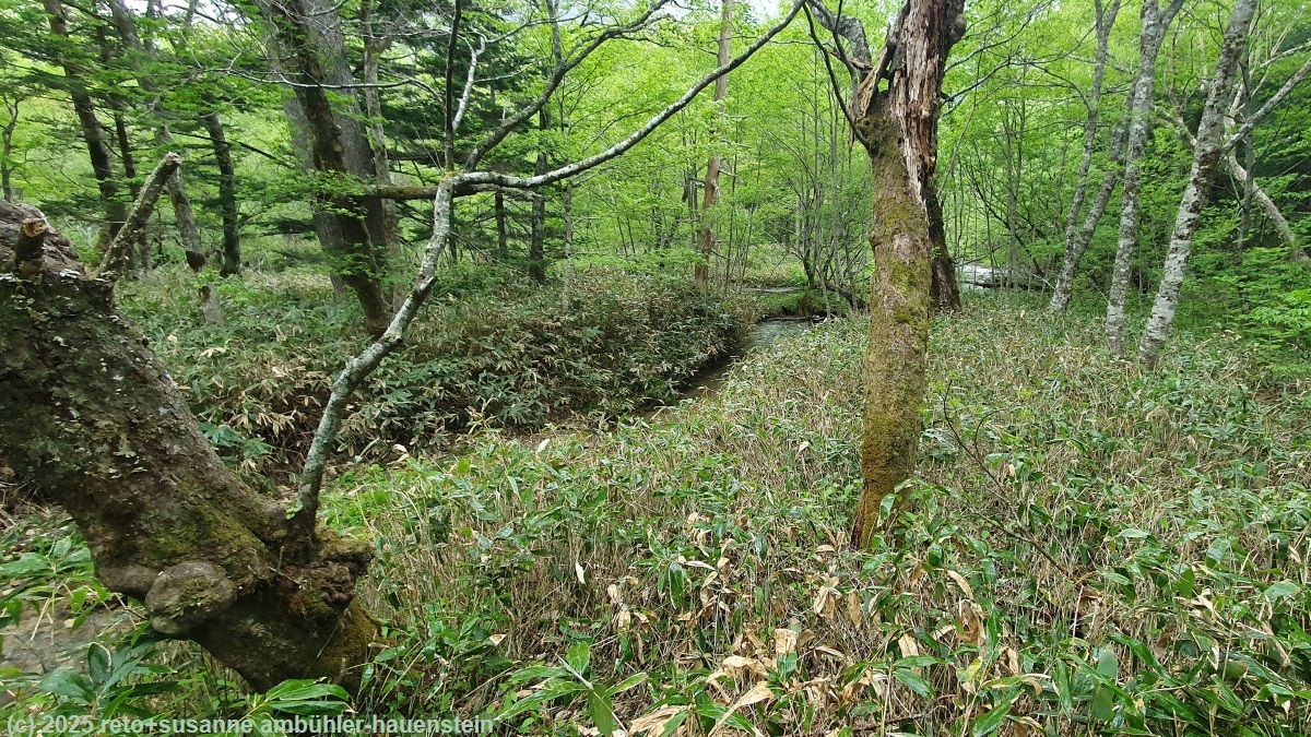 wir stehen kurz vor 8 uhr auf und frühstücken im hotelrestaurant. um 10:30 uhr machen wir uns auf den weg. bei einem grossen supermarkt kaufen wir lebensmittel für die kommenden tage. die fahrt verläuft sehr entspannt. gegen 12:30 uhr erreichen wir hirayu. wir picknicken beim besucherzentrum, danach fahren wir mit einem bus nach kamikochi. das wetter ist inzwischen trüb und regnerisch geworden. trotzdem wandern wir über den azusa river trail bis zur myojin brücke und wieder zurück zur bushaltestelle kamikochi. wir marschieren durch einen schönen wald und begegnen mehreren affen. ein bus bringt uns zum parkplatz akandana, wo unser wagen steht. die fahrt zu unserem tagesziel norikura in der gemeinde matsumoto führt über kurvenreiche strassen mit zahlreichen tunnels. das raicho onsen inn ist eine tolle unterkunft. wir übernachten in einem traditionellen schlafraum. susanne bereitet in der gemeinschaftsküche ein leckeres abendessen zu. nach dem essen reinigen wir uns in einem der privaten onsen, anschliessend verbringen wir einen gemütlichen abend in unserem zimmer.