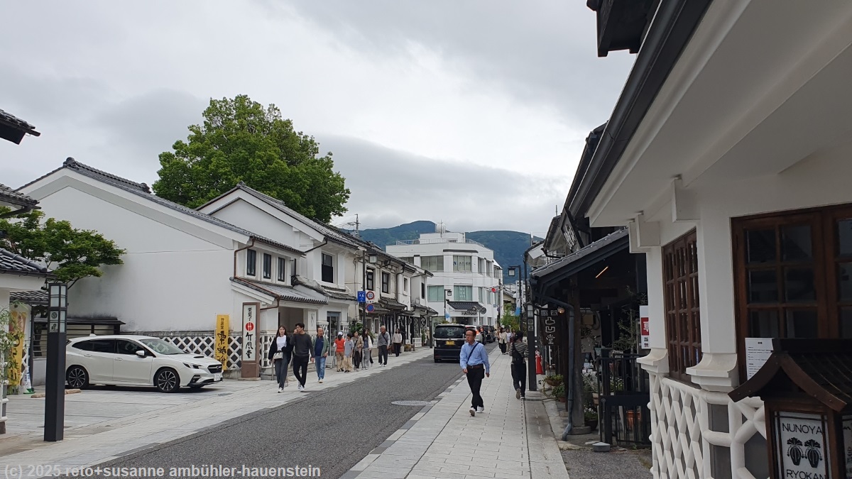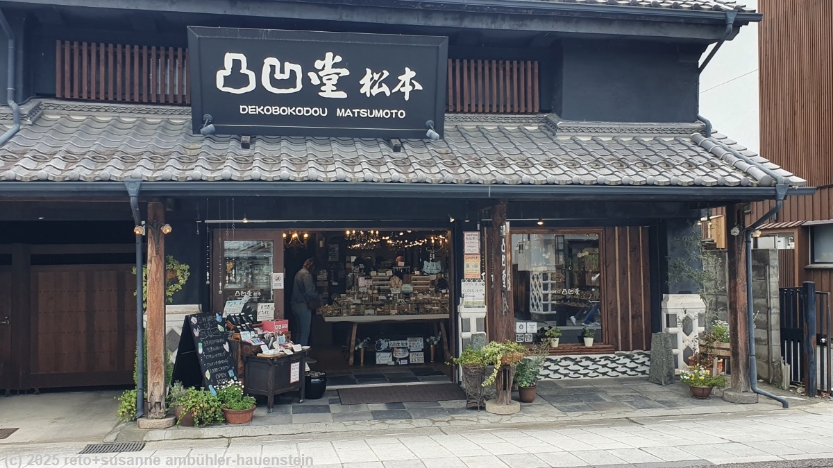 wir stehen um 07:30 uhr auf und frühstücken in der gemeinschaftsküche. zwei stunden später machen wir uns auf den weg richtung matsumoto. anfangs verläuft die fahrt sehr flüssig, aber auf der strasse 158 verursacht ein schleicher eine lange kolonne und verzögert die fahrt sehr unnötig. auch in der stadt matsumoto herrscht ein verkehrschaos. mit etwas geduld erhaschen wir einen parkplatz beim schloss. wir spazieren erst durch den schlossgarten und machen uns danach auf den weg zur einkaufsstrasse nakamachi dori mit ihren kunsthandwerkgeschäfter. nach einigem hin und her einigen wir uns, in der panateria zu mittag zu essen. um 13:30 uhr machen wir uns wieder auf den weg. ungeschickterweise verpasse ich beim ersten versuch die einfahrt zur E19 und so fahren wir einmal im kreis, bis wir endlich auf der autobahn sind. nun entspannt sich die situation und wir rollen zufrieden südwärts. bei achi wendet sich die strasse westwärts und wir durchfahren den mount amikake in einem endlos scheinenden tunnel. um 15:30 uhr erreichen wir unser tagesziel nakatsugawa. wir tun uns etwas schwer, den eingang zur unterkunft zu finden. diese ist unbedient, die zugangcodes haben wir per email erhalten. wir beschaffen uns beim besucherzentrum informationen zur morgigen wanderung und kaufen im riesigen einkaufszentrum valor ein. susanne kocht in der gemeinschaftsküche unserer unterkunft ein köstliches nachtessen, danach plant sie die morgige wanderung, ich führe die bücher nach. gegen 23 uhr sind wir im bett.