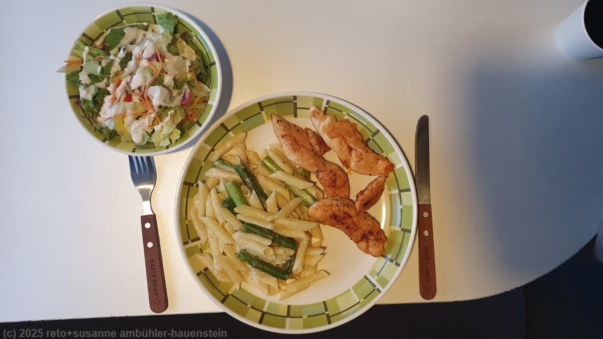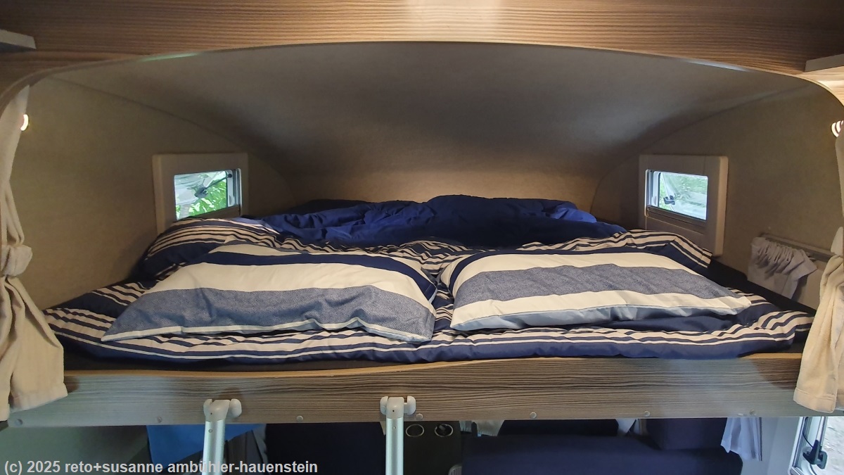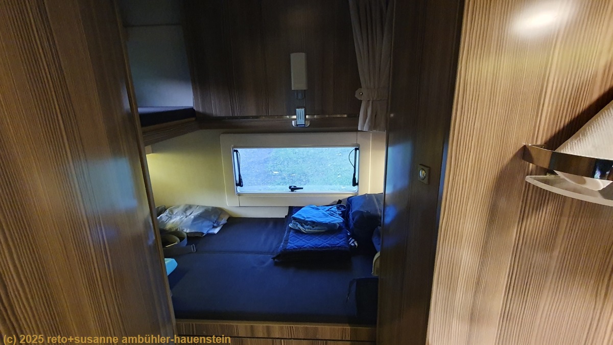die rucksäcke können wir im stauraum im heck unterbringen, das ist sehr praktisch. danach kocht susanne das abendessen, es schmeckt extrem lecker.