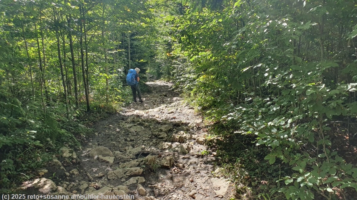 | leichter aufstieg über waldstrasse richtung sur le voué | steiler aufstieg über pfad richtung sur le voué |