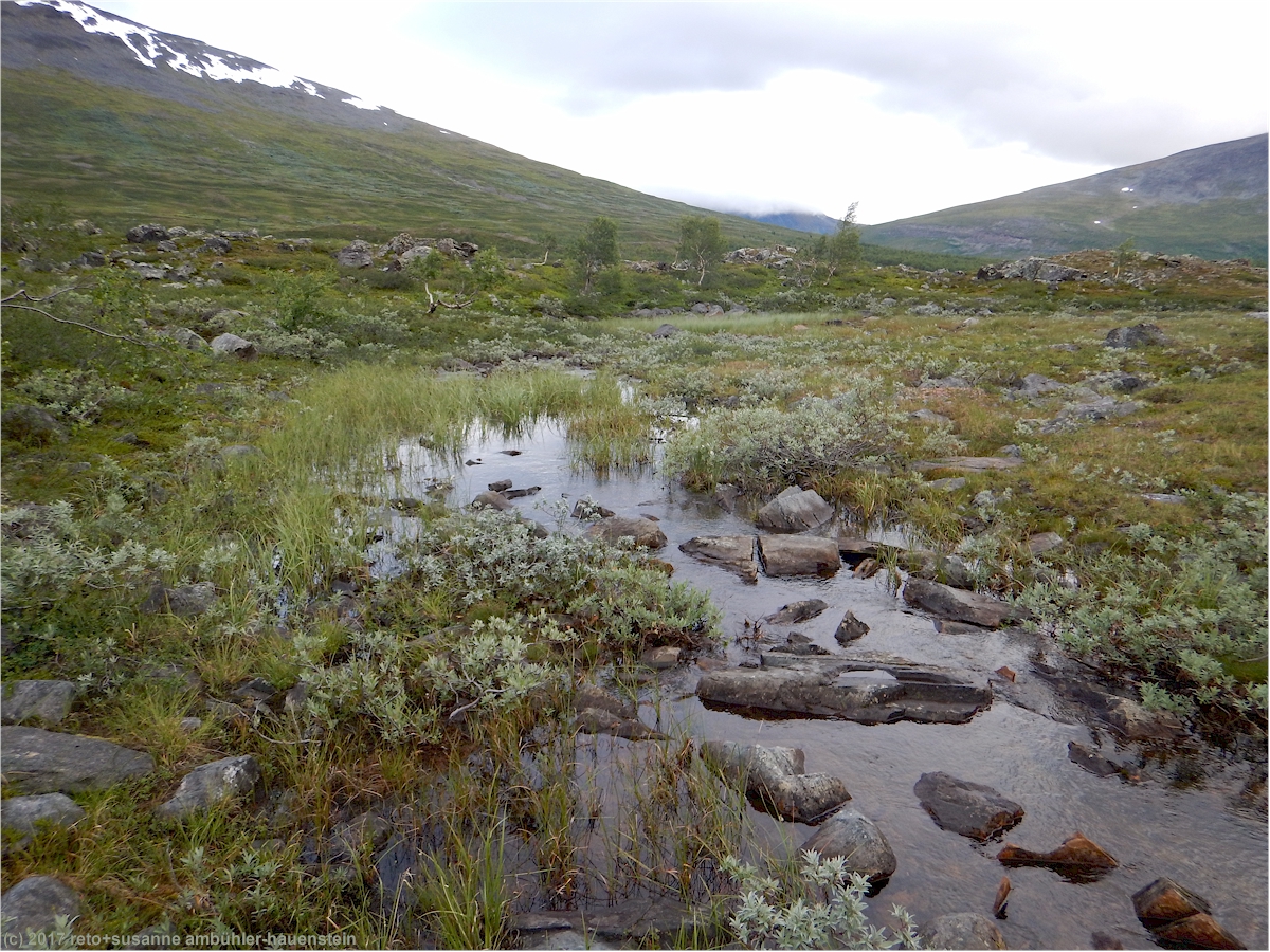 | sumpfiger abschnitt entlang des kungsleden | bach bei muorki |