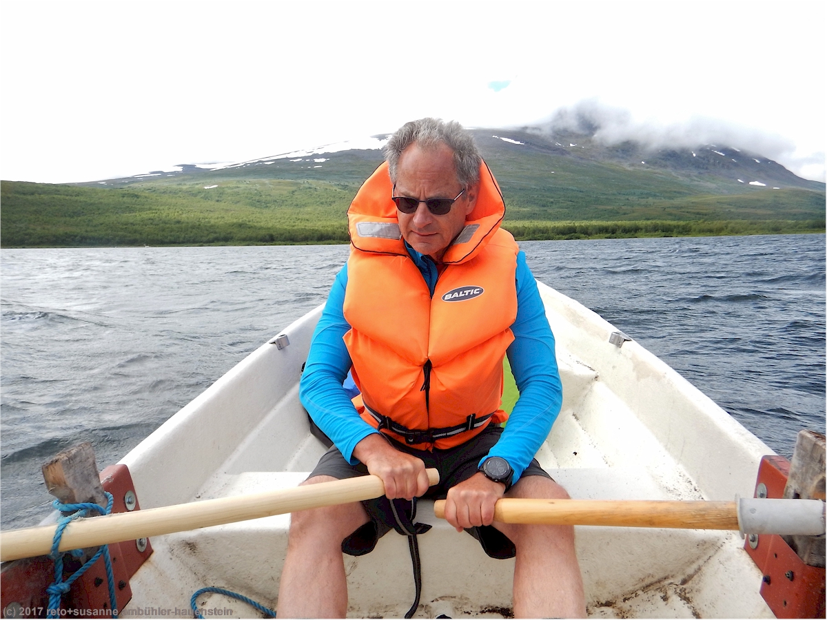 | reto legt sich in die riemen | zwei ruderboote am südufer des teusajaure |
