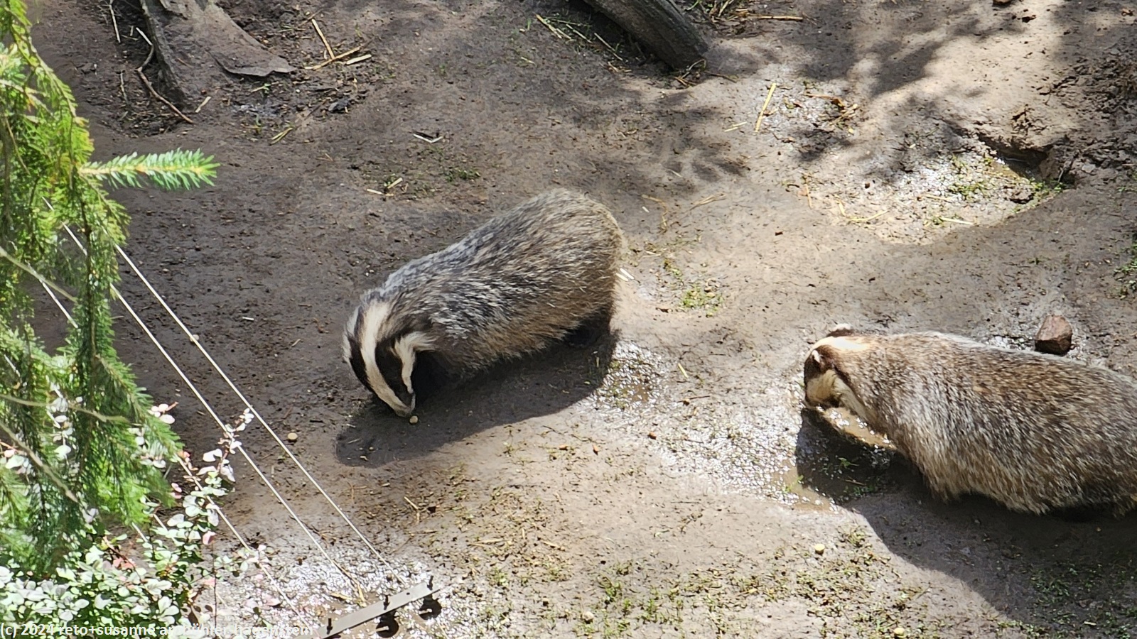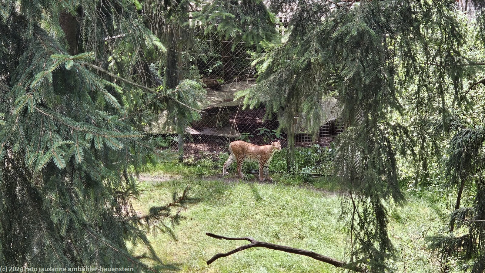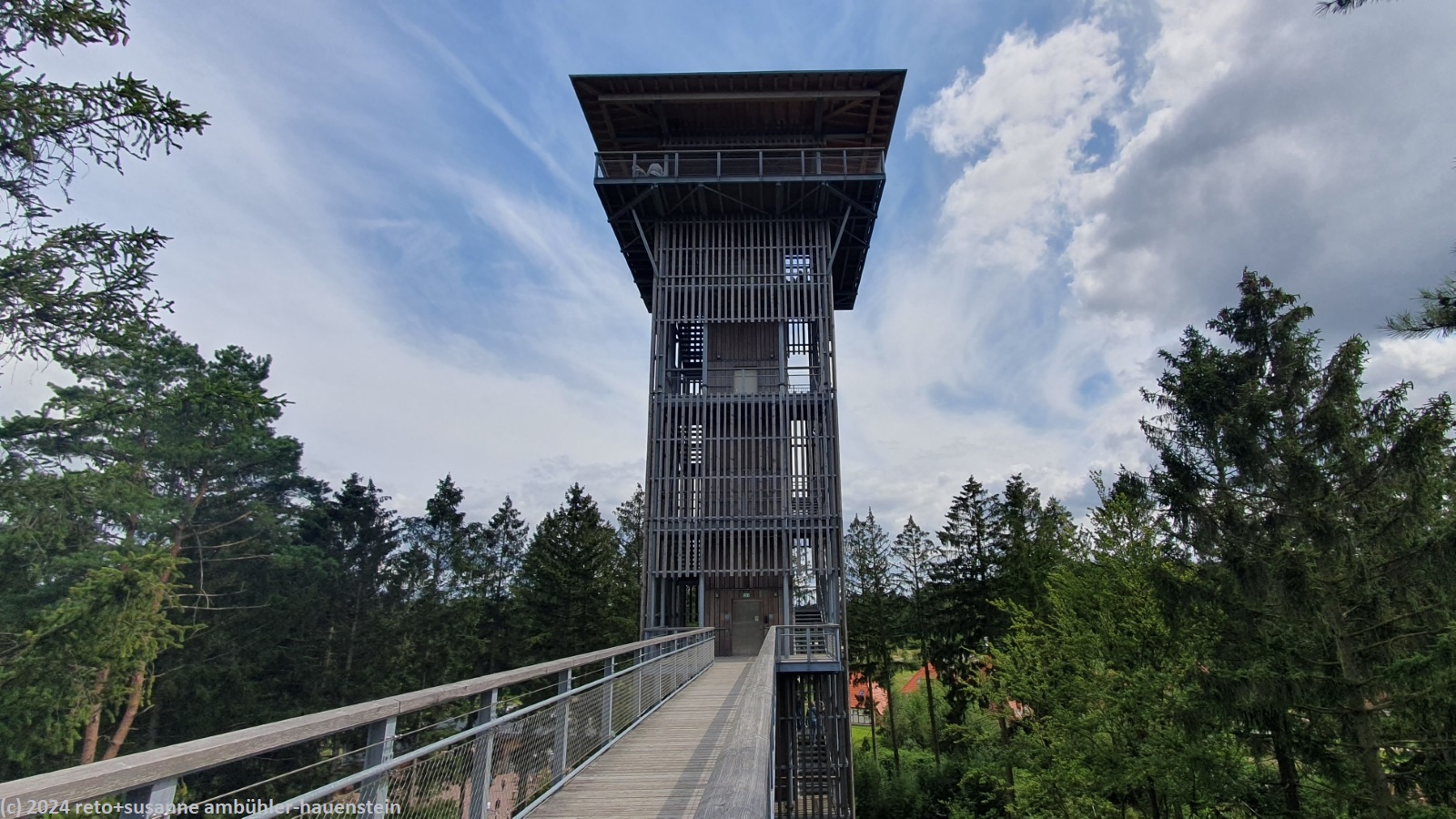 wir fahren zum "heide himmel", einem baumwipfelpfad im wildpark lüneburger heide. allerdings fahren wir nicht direkt, sondern machen einen bogen durch die heidelandschaft um wesel und schierhorn. dabei fahren wir durch undeloh. dieses dorf ist gemäss reiseführer der typische ort in der lüneburger heide schlechthin. manche häuser sind tatsächlich sehr schön, aber uns reicht die fahrt durch den ort, auf den geplanten spaziergang verzichten wir. kurz nach 13 uhr sind wir beim baumwipfelpfad. auch hier hält sich der andrang sehr in grenzen. wir picknicken zuerst an einem der tische beim eingang und geniessen anschliessend kaffee und kuchen auf der terrasse. danach schlendern wir über den baumwipfelpfad. vom steg sehen wir nicht nur in die baumkronen, sondern auch in die gehege des tiergartens. wir erkennen zwei luchse, dachse und waschbären. offenbar dürfen die besucher hier in manche gehege und tiere füttern. zudem sehen wir rehe, welche sich von den besuchern streicheln lassen. schliesslich erreichen wir den 45 meter hohen aussichtsturm. von der plattform haben wir eine tolle rundsicht. wir sehen vorwiegend wald, soweit das auge reicht. selbst der fernsehturm von hamburg ist mit blossem auge zu erkennen. kurz vor 15 uhr sind wir wieder beim jogi.