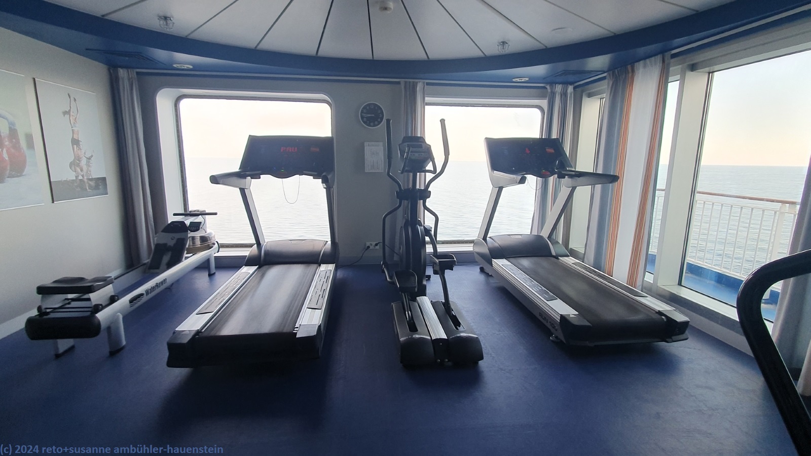 wir erwachen um 9 uhr unsere zeit. da auf dem schiff finnische zeit gilt, ist es bereits 10 uhr, höchste zeit fürs frühstück. im restaurant hat es erstaunlich wenig gäste. der tisch wurde uns bereits gestern beim check-in zugeteilt. das angebot ist gleich wie im vergangenen jahr. wir geniessen kaffee, müsli, brot und käse. die ostsee ist sehr ruhig, der himmel bedeckt. zurück in der kabine liest susanne, ich arbeite am computer. gegen 12:30 uhr besuchen wir noch einmal das restaurant. dass man zweimal zum frühstücksbuffet gehen darf, ist wirklich eine geniale idee. so essen wir nochmals eine kleinigkeit. es hat nun deutlich mehr gäste als bei unserem ersten besuch. danach setzen wir uns an einen der tische am fenster. susanne beschäftigt sich mit ihrem tolino, ich mit meinem computer. der himmel hat sich inzwischen aufgehellt, die sonne scheint. gegen 15:30 uhr gehe ich in den fitnessraum. ich laufe eine halbe stunde auf dem laufband. grundsätzlich bevorzuge ich das joggen im freien, aber ein laufband mit blick aufs meer habe ich auch nicht alle tage zur verfügung. danach mache ich noch einige übungen soweit das im kleinen kraftraum möglich ist.