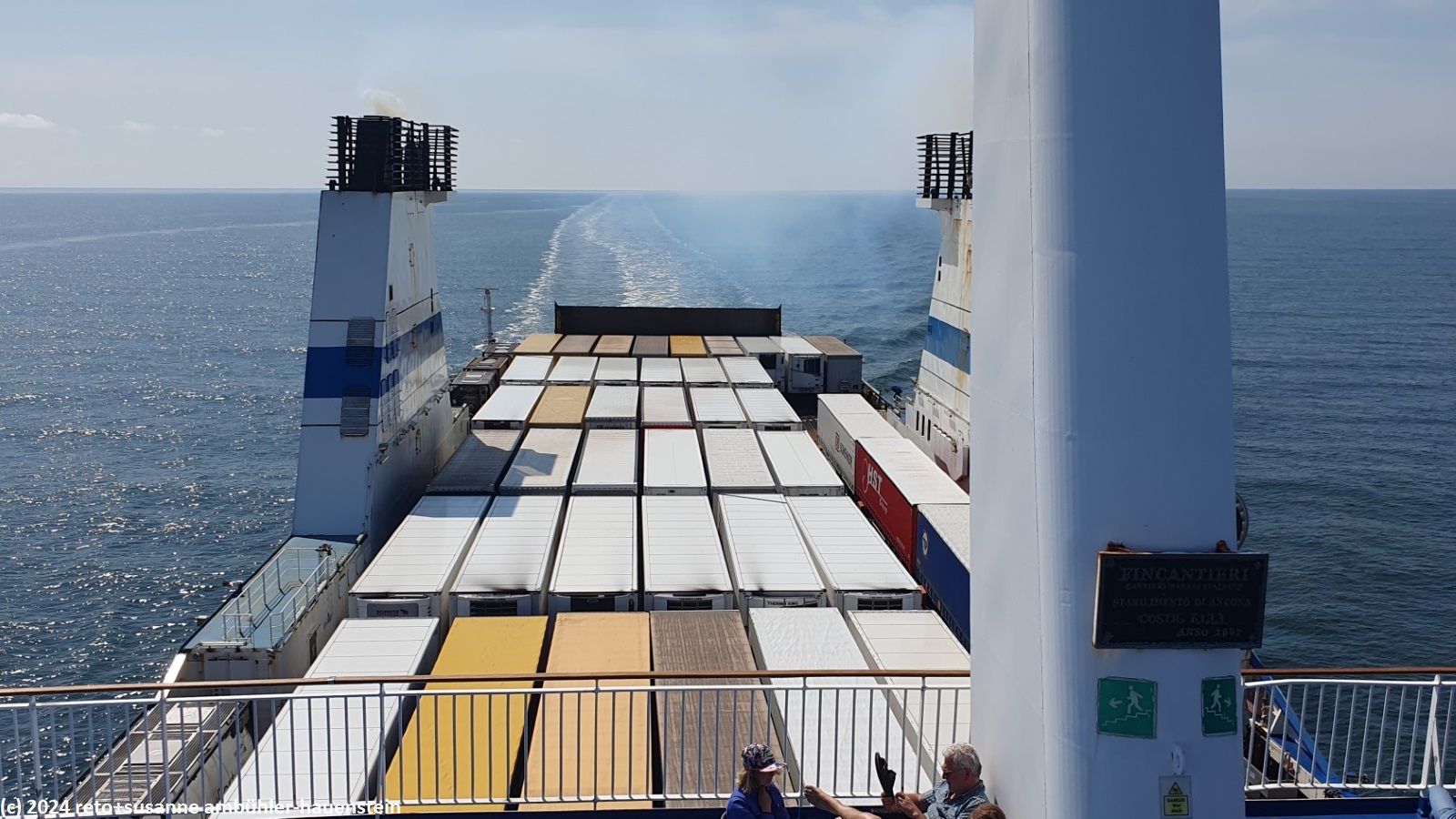 nachdem ich geduscht habe, setzen wir uns auf das sonnendeck und essen eine kleinigkeit. im windschatten lässt es sich gut aushalten. der himmel ist fast wolkenlos, die sonne scheint, das meer ist sehr ruhig.