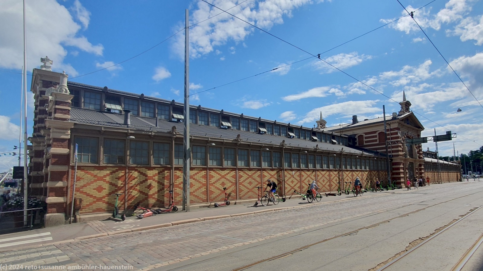 als wir um 08:30 uhr aufstehen und im freien frühstücken, ist der himmel bewölkt. um 10:20 uhr nehmen wir die A1 richtung helsinki unter die räder. die fahrt verläuft entspannt, nur die anfahrt zur autoverladestation in pasila ist weiterhin ein albtraum. nachdem wir die sachen gepackt haben, die wir ins abteil mitnehmen möchten, fahren wir mit der s-bahn ins zentrum von helsinki. wir essen in der alten markthalle zu mittag, danach besuchen wir den markt am hafen und spazieren anschliessend kreuz und quer durch die stadt. anfangs ist das wetter sonnig, im laufe des nachmittages setzt regen ein. wir finden in diversen warenhäuser zuflucht. das nachtessen geniessen wir im restaurant la famiglia. gut verköstigt fahren wir mit dem zug zurück nach pasila. kurz vor 22 uhr dürfen wir unseren wagen auf den autozug fahren. die zeit bis zur abfahrt des nachtzuges verbringen wir im modernen bahnhof. der zug verlässt pasila pünktlich. mitternacht ist längst vorüber, als wir in unserem schlafabteil das licht löschen.