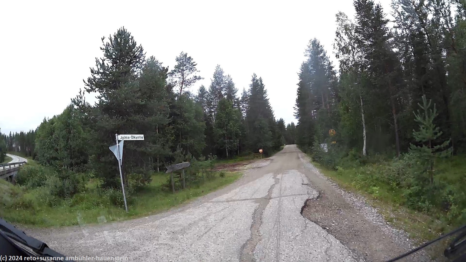 wir trinken einen kaffee und geniessen eine zimtschnecke beim kiosk. erstaunlicherweise sind wir die einzigen gäste. unterwegs sind uns ab und zu leute begegnet und auch auf dem parkplatz stehen einige autos. bevor wir zum jogi zurückkehren, schauen wir uns die stelle an, wo kanus und kajaks in den ala-ölkky gelassen werden. für die boote gibt es eine längere "rutschbahn", über welche erstere zum ufer hinunter gezogen werden können. eine äusserst raffinierte einrichtung. über die unbefestigte julma-ölkyntie und die landstrasse 843 fahren wir zum campingplatz zurück.