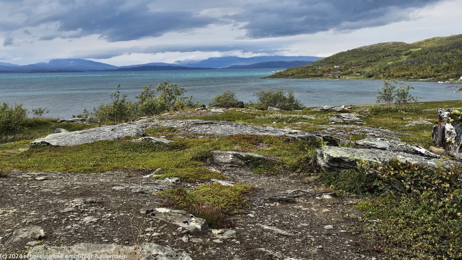 ich stelle fest, dass die email an den camping årrenjarka von meinem handy nicht versandt wurde, das ist ungeschickt, denn nun haben wir für den rest der woche kein empfang. via inReach bitte ich unsere tochter, die reservation zu tätigen, hoffentlich klappt das. draussen geht immer noch der böige wind. trotzdem gehen wir um die bucht herum zu dem haus, bei welchem man fladenbrot und geräucherten fisch kaufen kann. wir sind allerdings nur an ersterem interessiert. wir deponieren das fladenbrot in unserem zimmer, danach machen wir einen kleinen fussmarsch um den zeltplatz.