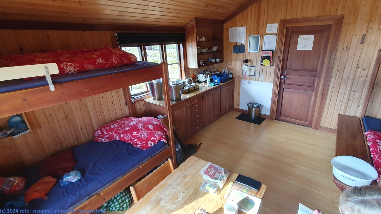 zurück in der hütte geniessen wir das abendessen. danach liest susanne, ich beschäftige mich am tablet. später koche ich mir noch heisses wasser für einen tee. der wind bläst unvermindert um die hütte. um 21 uhr stecken susanne und unser zimmergenosse bereits in den schlafsäcken und ich schlüpfe nun ebenfalls in meinen.