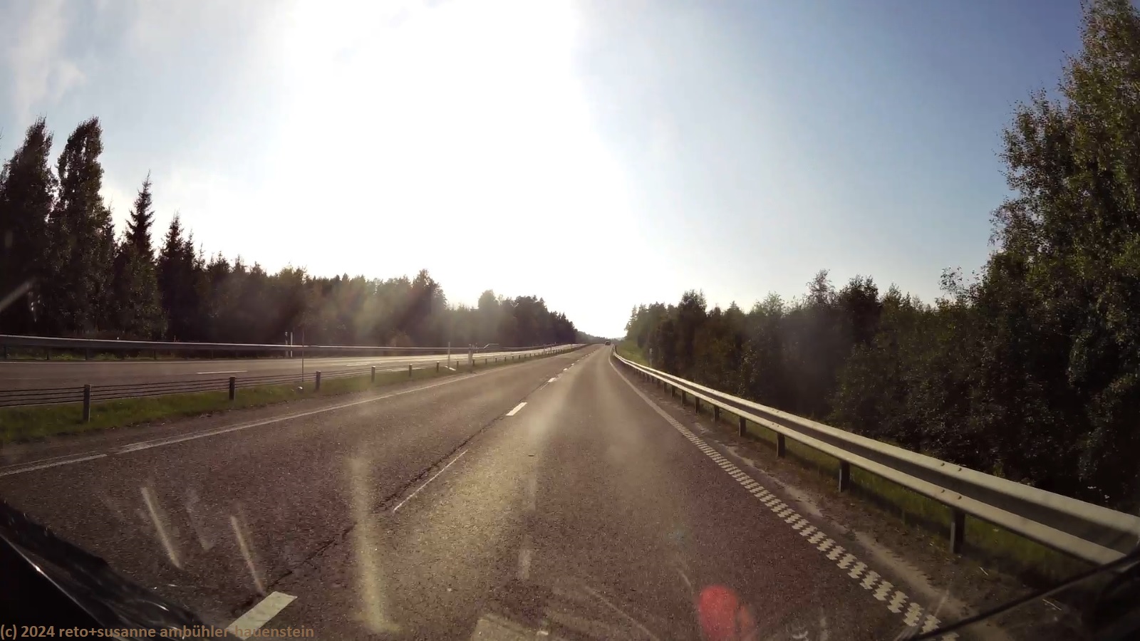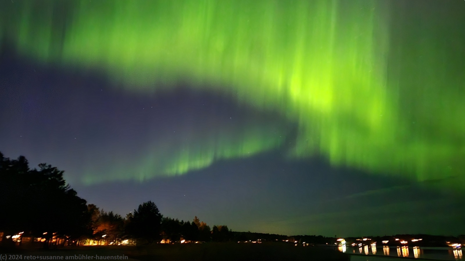 wir schlafen bis gegen 9 uhr. als wir aufstehen, prasselt ein heftiger regen auf unseren wagen. nach dem frühstück machen wir uns auf den weg richtung süden. die fahrt über die E4 verläuft entspannter als erwartet. der regen lässt zwar bald nach, dafür fahren wir immer wieder durch dichten nebel. gegen 13:30 uhr erreichen wir umeå, wo wir im cafe rost ein köstliches mittagessen geniessen. auf der weiterfahrt bessert sich das wetter zusehends, kurz nach 16 uhr wird es sogar richtig sonnig. besonders eindrücklich ist die fahrt über die högakustenbron, welche den ångermanälven überspannt. kurz vor 18:15 uhr erreichen wir unser tagesziel. der campingplatz am bergafjärden ist ziemlich voll. bevor wir uns einrichten, fahren wir zum ICA Kvantum in kvissleby um lebensmittel einzukaufen. das nachtessen können wir im freien geniessen. während wir essen fliegen hunderte wildgänse über den platz und versammeln sich im nahen fjord. nach dem abwaschen kommen wir in den genuss von polarlichter der extraklasse.