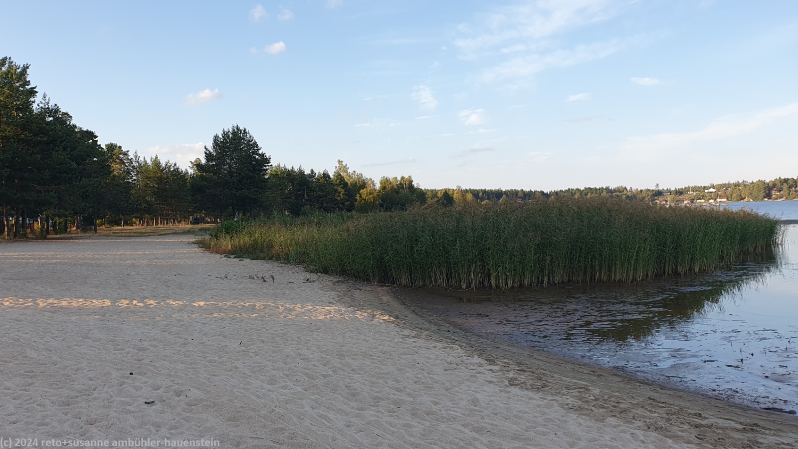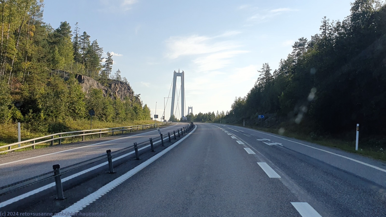 der aufwand hat sich gelohnt, wir essen je eine köstliche salatschale, danach gibt es einen feinen kaffee und für mich ein stück karottentorte. kurz vor 15 uhr sind wir wieder beim jogi. bei der nächsten tankstelle füllen wir den tank unseres wagens, dann geht es auf der E4 der küste entlang südwärts. an der situation auf der strasse ändert sich nichts und so geht es ohne verzögerungen vorwärts. als wir uns sundsvall nähern, lockert sich die wolkendecke auf und die sonne scheint. gegen 18:15 uhr erreichen wir unser tagesziel bergafjärdens camping.