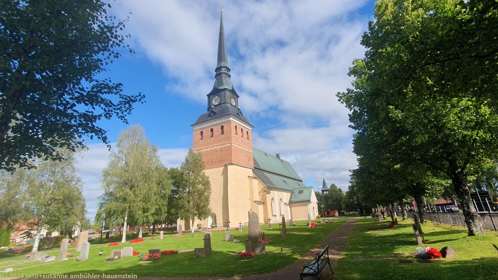 wir stehen kurz nach 8 uhr auf. anfangs ist es ziemlich sonnig, aber dann ziehen mehr wolken auf und es geht ein kühler wind. wir tragen unsere schmutzige wäsche zu einem der servicehäuser und susanne startet eine erste maschine. während unsere wäsche gewaschen wird, frühstücken wir hinter unserem wagen, da sind wir ein bisschen windgeschützt. nachdem susanne die zweite maschine gestartet hat, packen wir unsere kleider für die bevorstehende mehrtageswanderung. ausserdem kaufen wir das busbillett für die fahrt von mora nach sveg. die fahrkarten von sveg nach funäsdalen können wir gemäss webseite im bus lösen. die weiterfahrt von funäsdalen nach fjällnäs muss man am vortag telefonisch vorreservieren, das geht aber am wochenende nicht. mal sehen, ob wir morgen früh noch eine fahrt vereinbaren können. als die waschmaschine fertig ist, machen wir uns auf den weg in die stadt, um im ICA die fehlenden lebensmittel einzukaufen. anschliessend geniessen wir im gleichen cafe wie gestern ein köstliches mittagessen inklusive dessert.