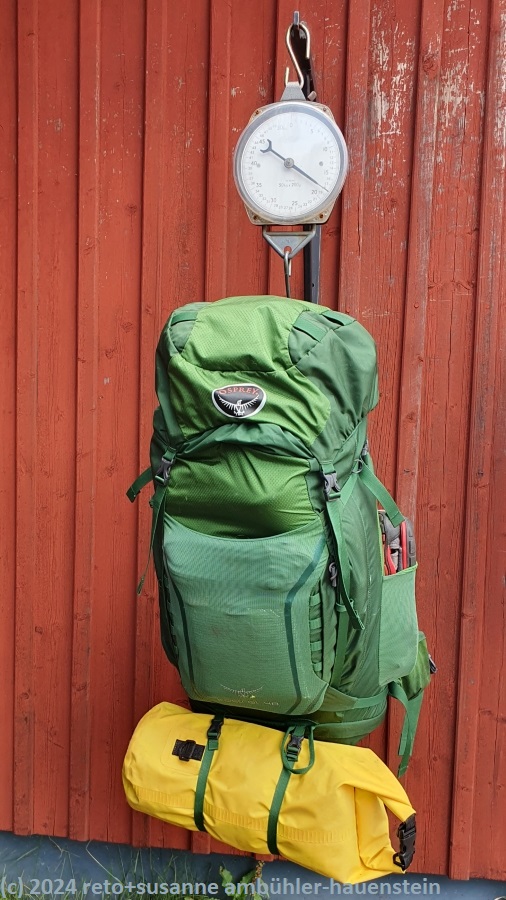 | retos rucksack wiegt 18.2 kg | susannes rucksack wiegt 13.8 kg |