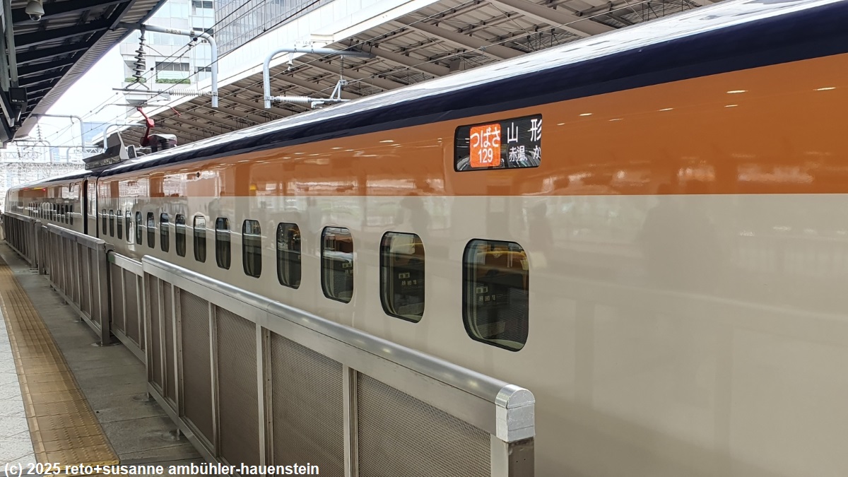 unser handy weckt uns um 7 uhr. wir frühstücken wiederum im restaurant beim nachbarhotel. um 8 uhr machen wir uns zu fuss auf den weg zur tokyo station. diese befindet sich etwa 1.5 km von unserem hotel entfernt. unser navi führt uns zuverlässig zum hauptbahnhof. entgegen unseren befürchtungen finden wir den weg zum zug ziemlich problemlos. wir müssen noch fast 30 minuten warten. das zugfahren in japan ist hochgradig durchorganisiert, das kommt uns sehr entgegen. auf dem bahnsteig sind die zugänge zu den nummierierten wagen deutlich markiert, man weiss genau, wo man sich hinstellen muss, das ist toll. wie die dame gestern am JR-schalter schon gesagt hat, ist der zug voll. für uns gab es nur noch sitzplätze links und rechts des ganges, die fensterplätze waren schon alle vergeben. der hochgeschwindigkeitszug verlässt tokyo äusserst pünktlich. nach 48 minuten zugfahrt erreichen wir utsunomiya. mit etwas intuition finden wir den weg zur nikko line. mit dieser geht es 9 minuten später weiter nach tobu-nikko. um 10:32 uhr sind wir am ziel.
