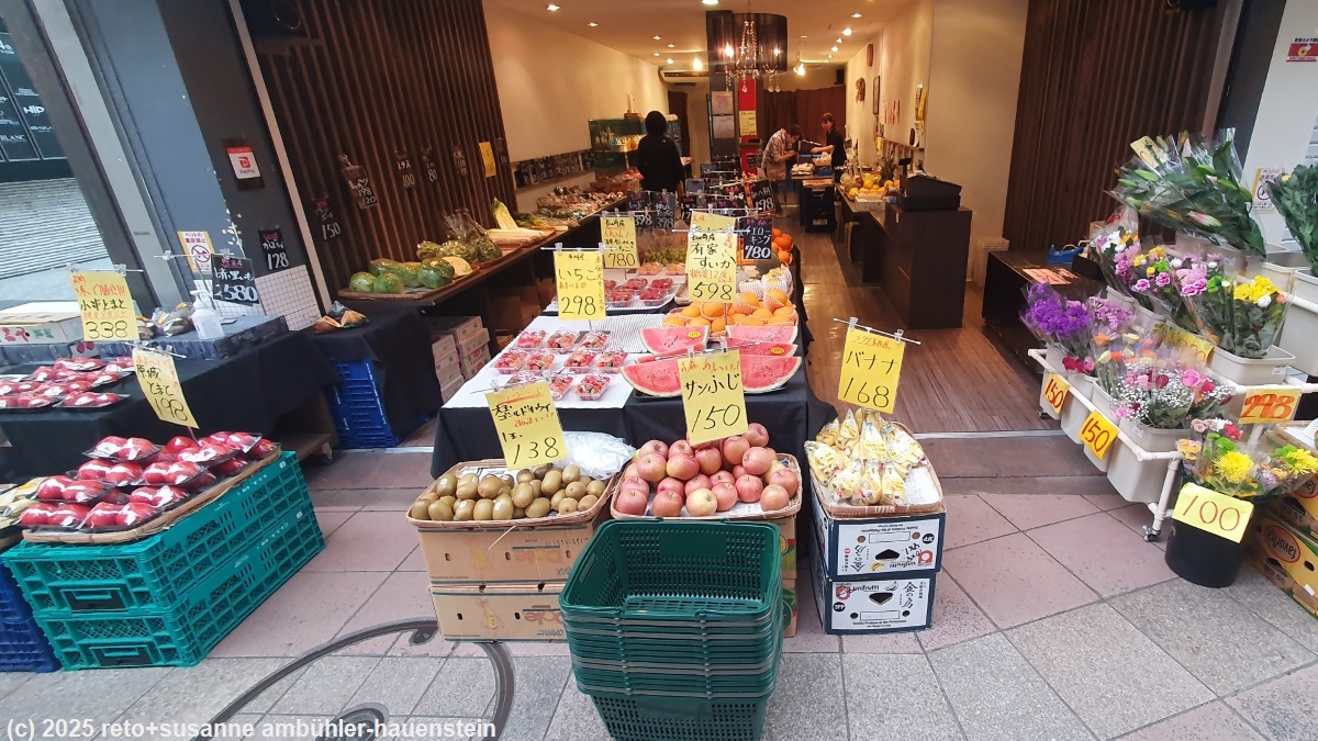 in einem hübschen cafe gibt es kaffee und früchte, das lassen wir uns nicht entgehen. susanne gönnt sich einen fruchtbecher, ich ein erdbeer croissant. danach schlendern wir kreuz und quer durch das quartier, bis wir uns schliesslich kehren wir zum hotel zurück. wir machen uns etwas frisch, danach liest susanne, ich führe die bücher nach. gerade als wir aufbrechen möchten um nachtessen zu gehen, erreicht uns die erfreuliche nachricht, dass wir zum vierten mal grosseltern geworden sind ! nach drei enkelinnen, dürfen wir nun unseren ersten enkel willkommen heissen. wir gratulieren der jungen familie zu ihrem zuwachs und wünschen ihnen alles gute. danach machen wir uns auf den weg zum restaurant, welches wir heute nachmittag in der nähe der hamanomachi arkaden gesehen haben. der angekündigte regen setzt nun langsam ein, gut haben wir unseren knirps dabei. das essen schmeckt ganz ausgezeichnet. auf dem rückweg zum hotel giesst es wie aus kübeln. trotzdem machen wir noch einen kleinen abstecher zum starbucks. in einem reiseführer hatten wir gelesen, die japaner würde nie smalltalk machen, aber heute werden wir schon zum zweiten mal eines anderen belehrt. bereits im tram wurde susanne von einer frau angesprochen, die wissen wollte, woher wir kommen. auch die dame an der theke im starbucks, möchte wissen, aus welchem land wir kommen, ob wir länger in nagasaki bleiben und wohin wir sonst noch reisen möchten. kurz vor 21 uhr sind wir wieder im hotelzimmer. wir duschen uns und ich führe nochmals die bücher nach. gegen 23 uhr löschen wir das licht.