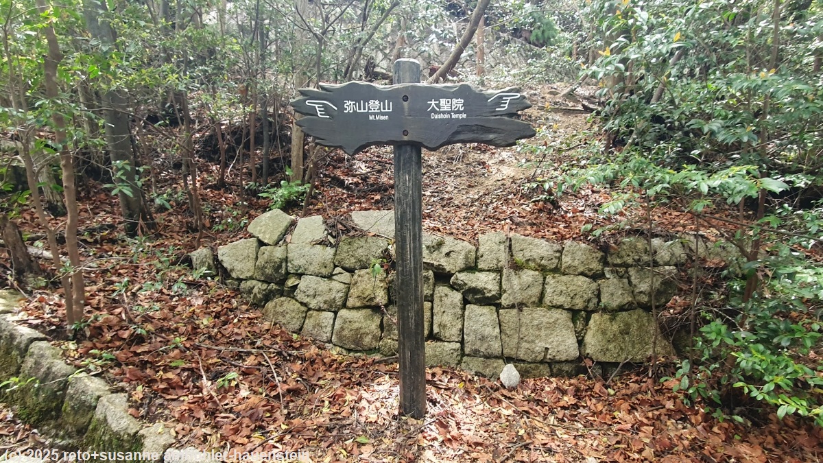 | treppe im verlauf des misen climbing path - daishoin course | wegweiser am misen climbing path - daishoin course |