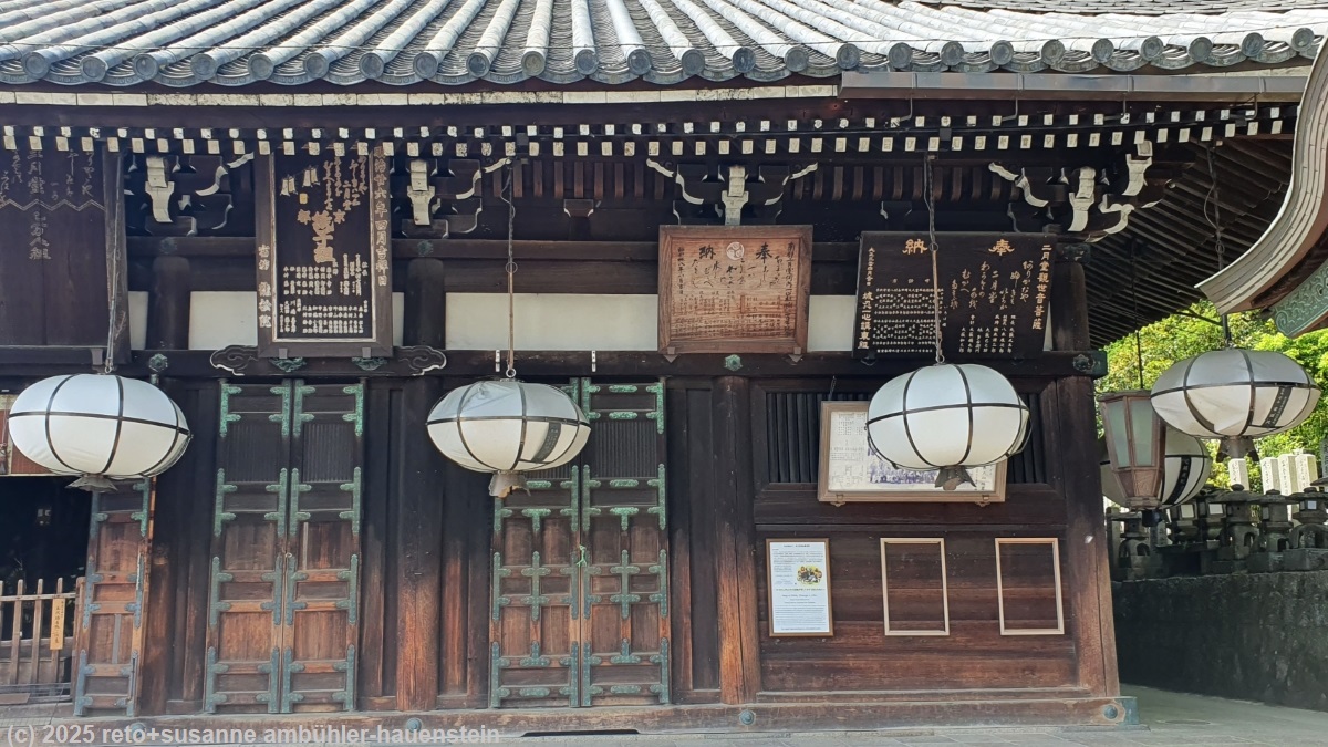 wenig später erreichen wir den tempel kasuga taisha. diese anlage befindet sich wieder in einem dichten wald. bei einem der gebäude hat es duzende von laternen, manche sind aus gold, das sieht toll aus.
