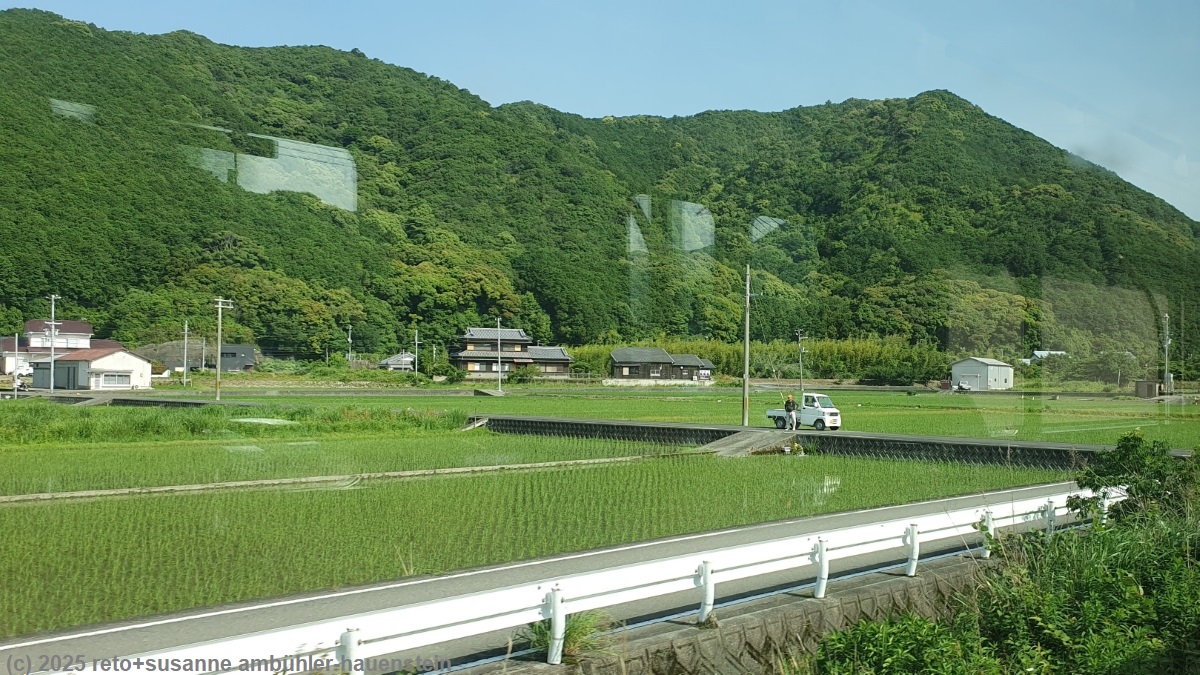 | regionalzug von kii-tanabe nach kii-katsuura | blick aus dem regionalzug auf die felder bei susami |